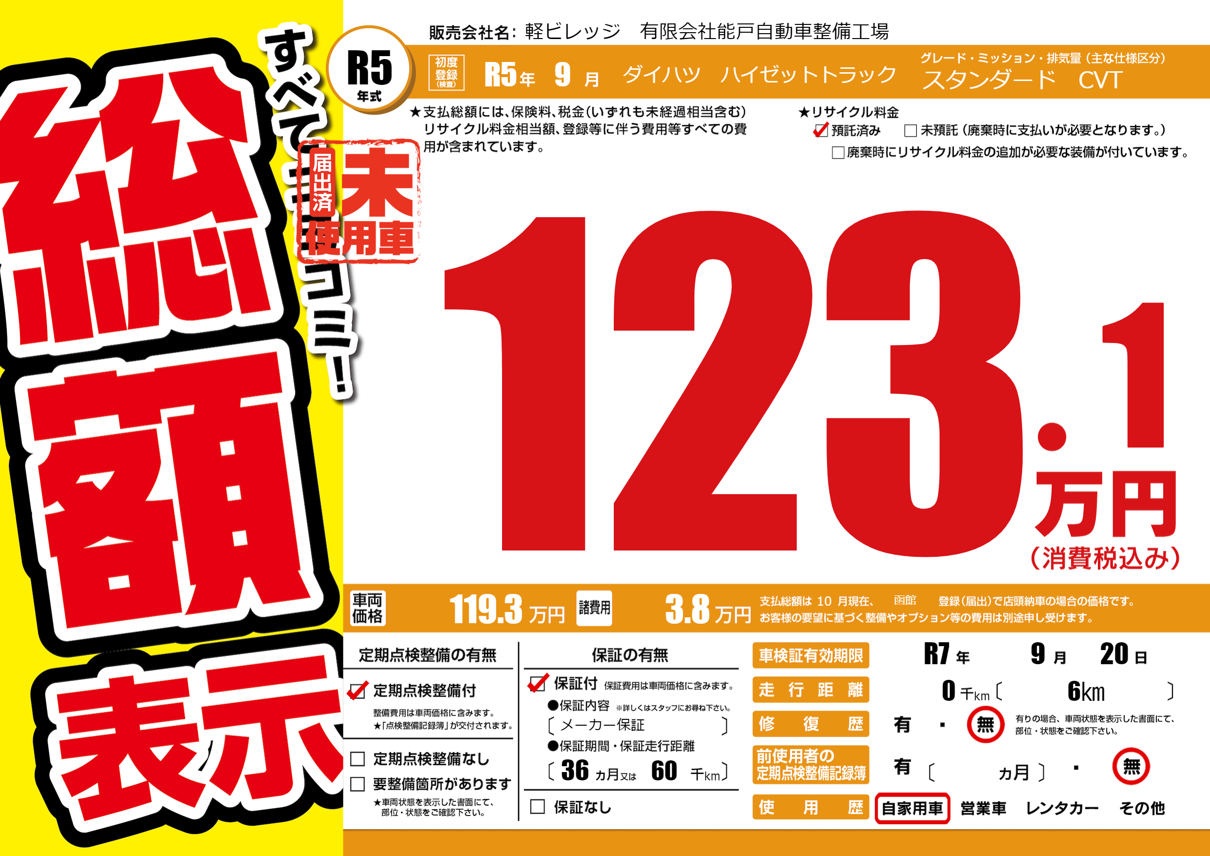 なし | 車検制限 | R7年9月20月 |