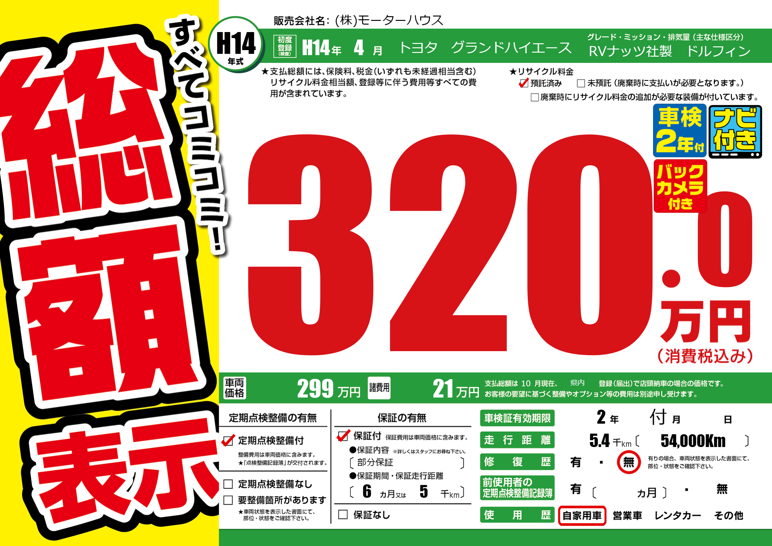 | 定期点検整備 | 定期点検整備あり | ||