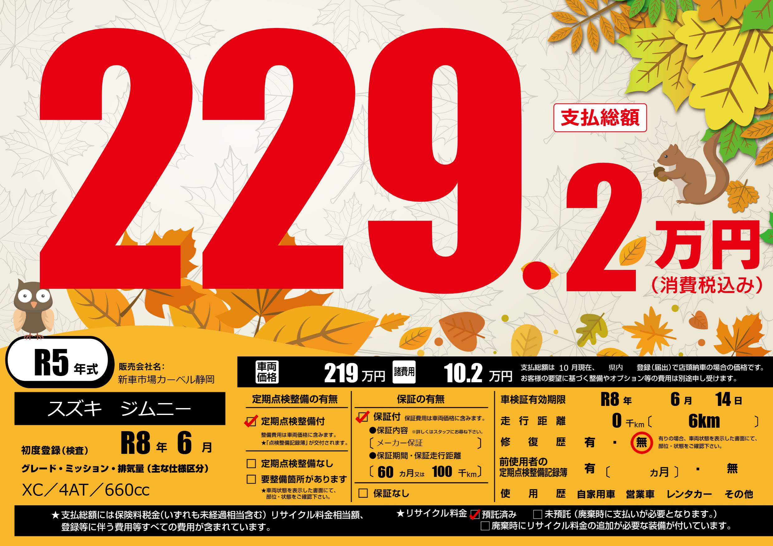 | 走行キロ | - | 初年度登録 | R8年6月 |