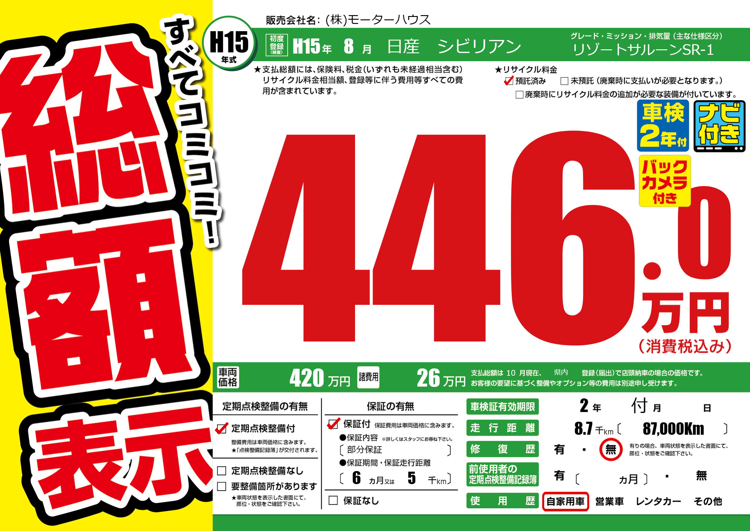 | 初年度登録 | H15年8月 | ||