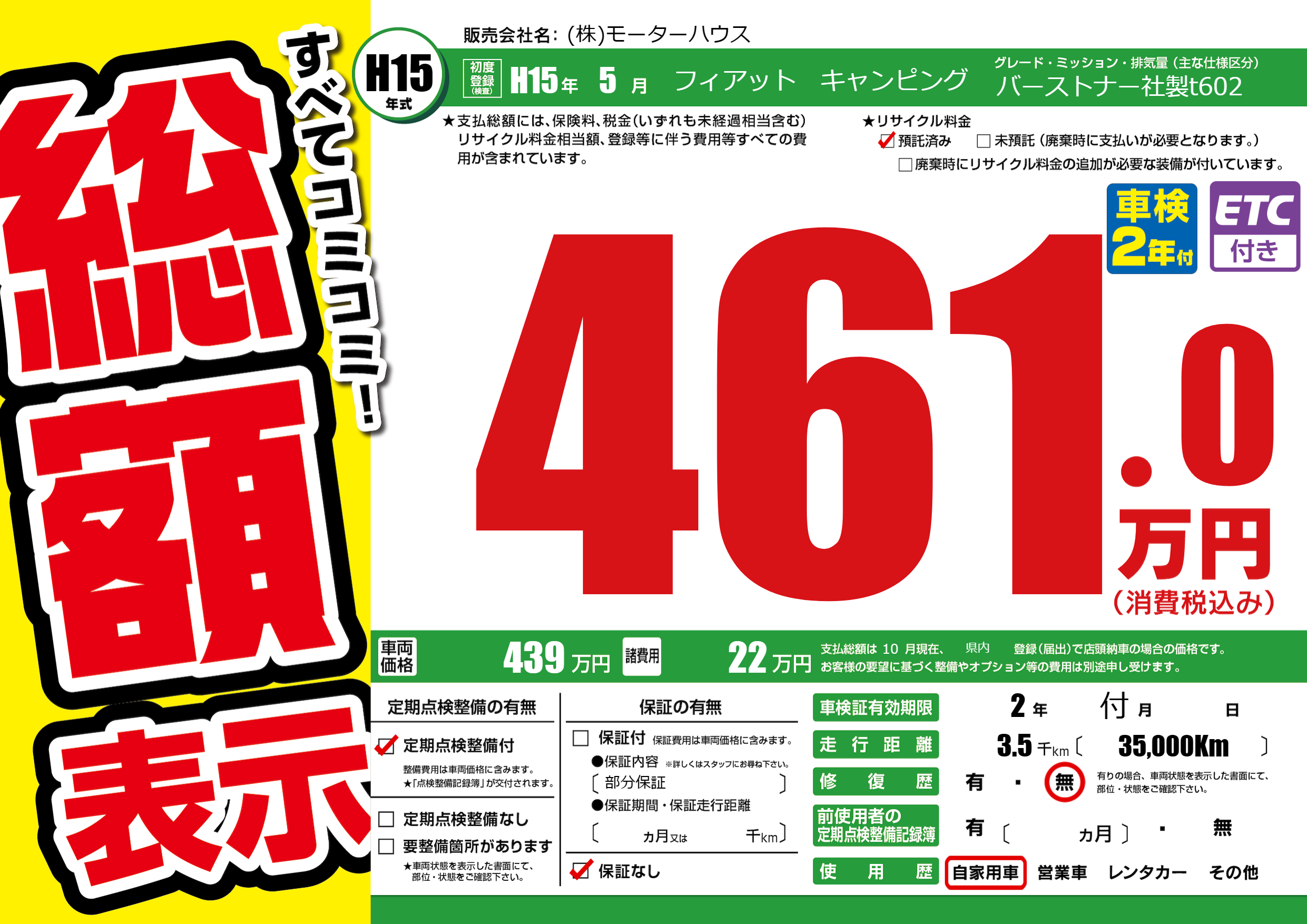 | 定期点検整備 | 定期点検整備あり | ||