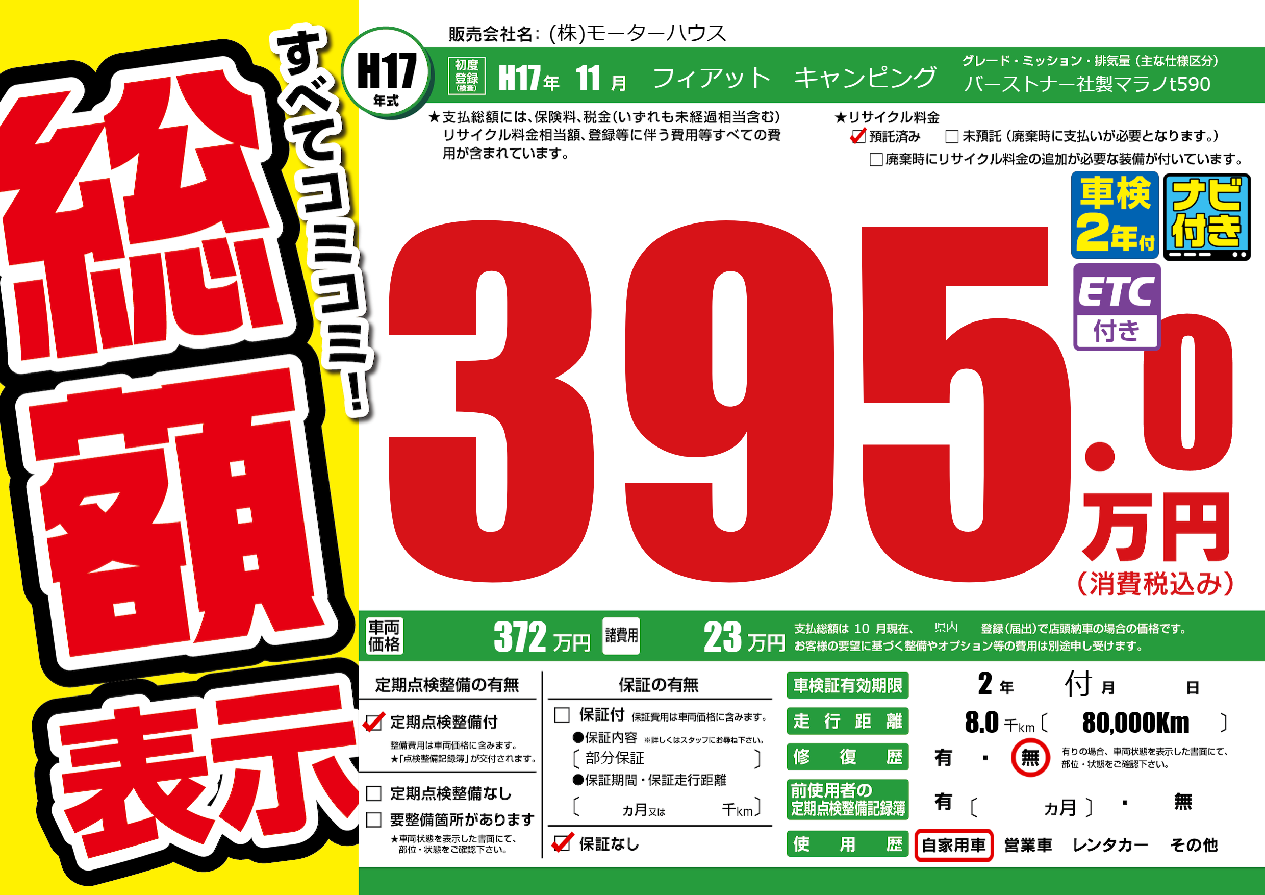 | 車名 | フィアット キャンピング | グレード ミッション 排気量 |