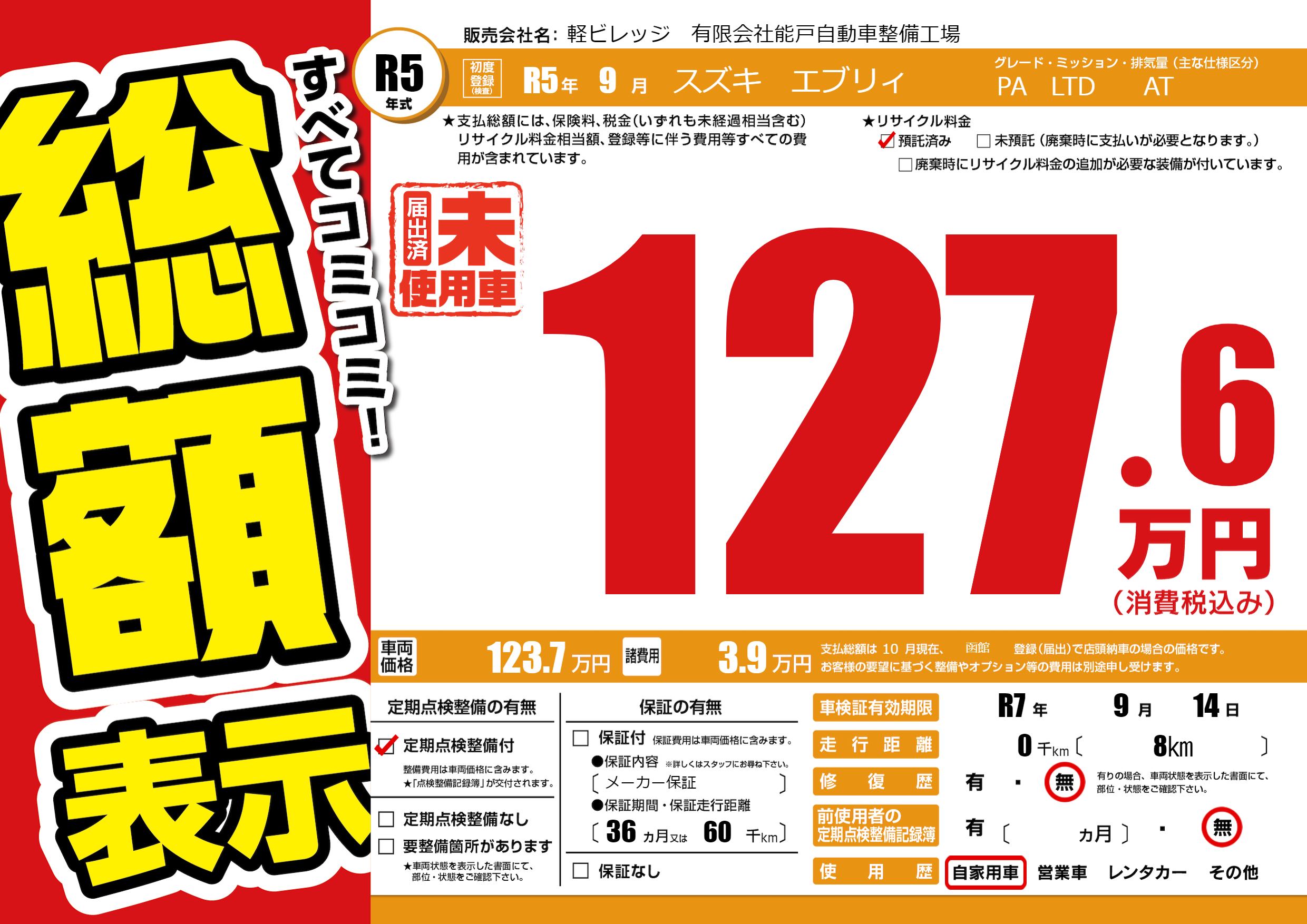 なし | 車検制限 | R7年9月14月 |