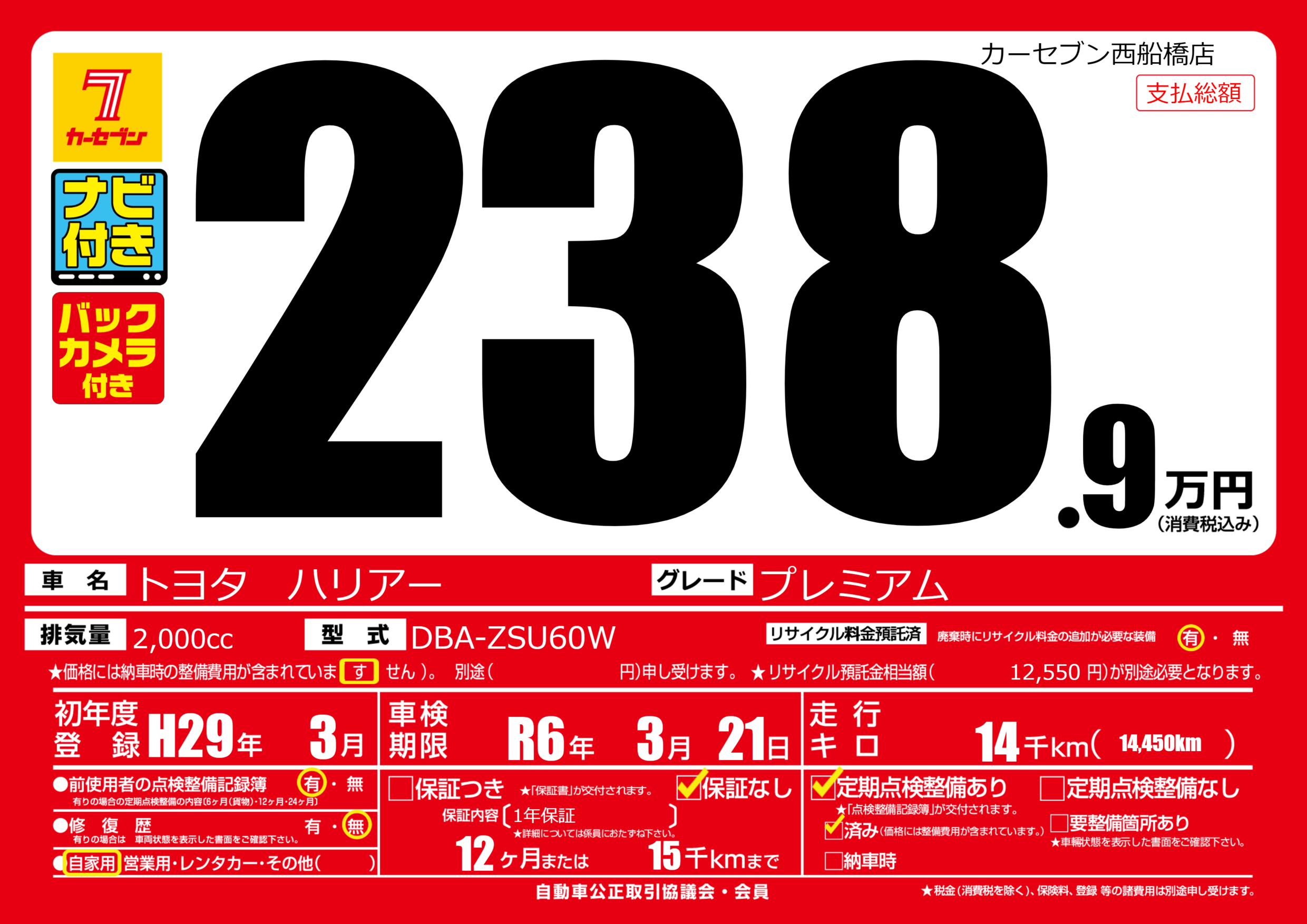 定期点検整備 定期点検整備あり 定期点検整備済み