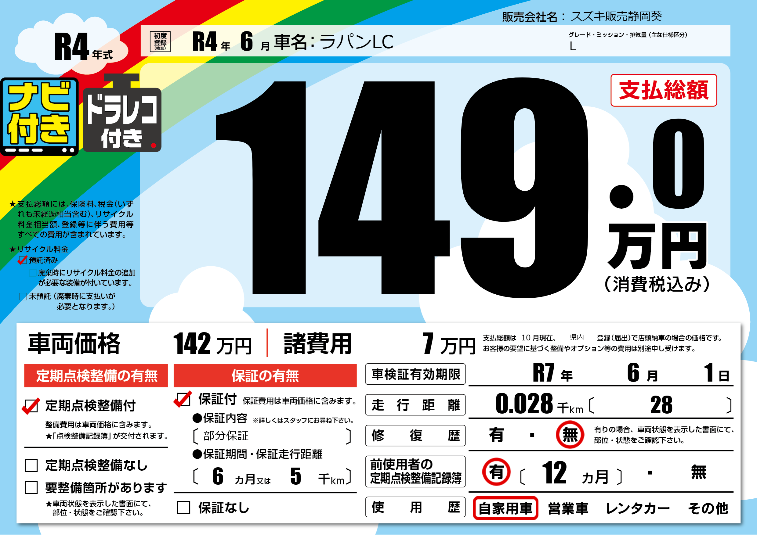 | 車名 | ラパンLC | グレード ミッション 排気量 |