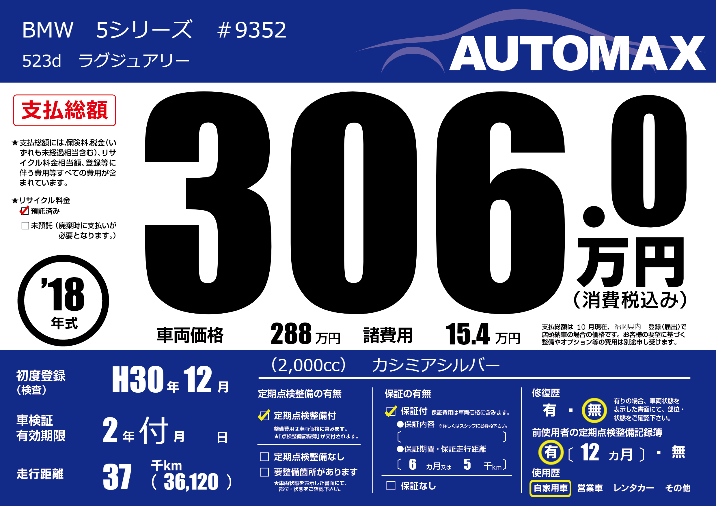 | 初年度登録 | H30年12月 | ||