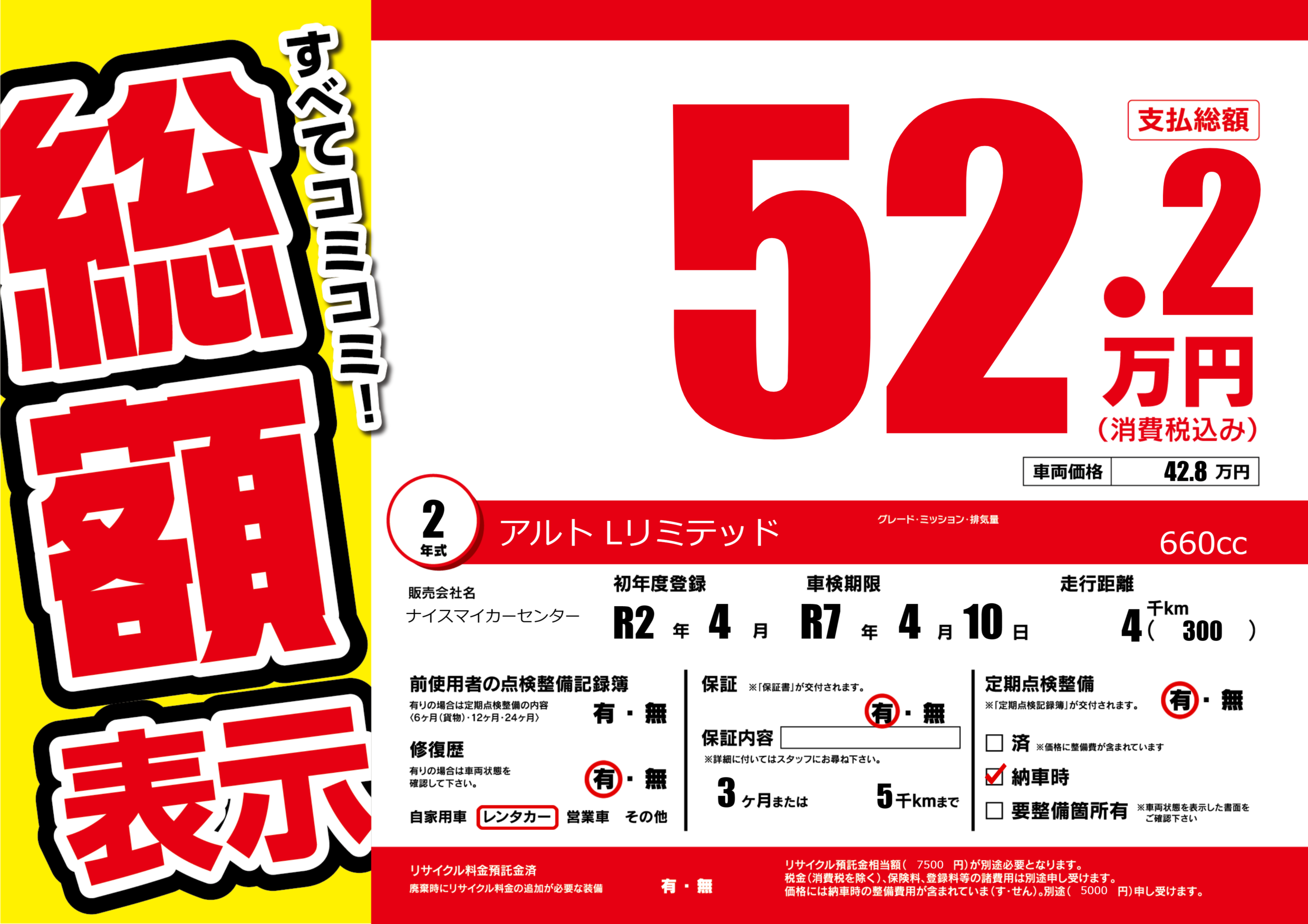 車検制限 | R7年4月10月 |