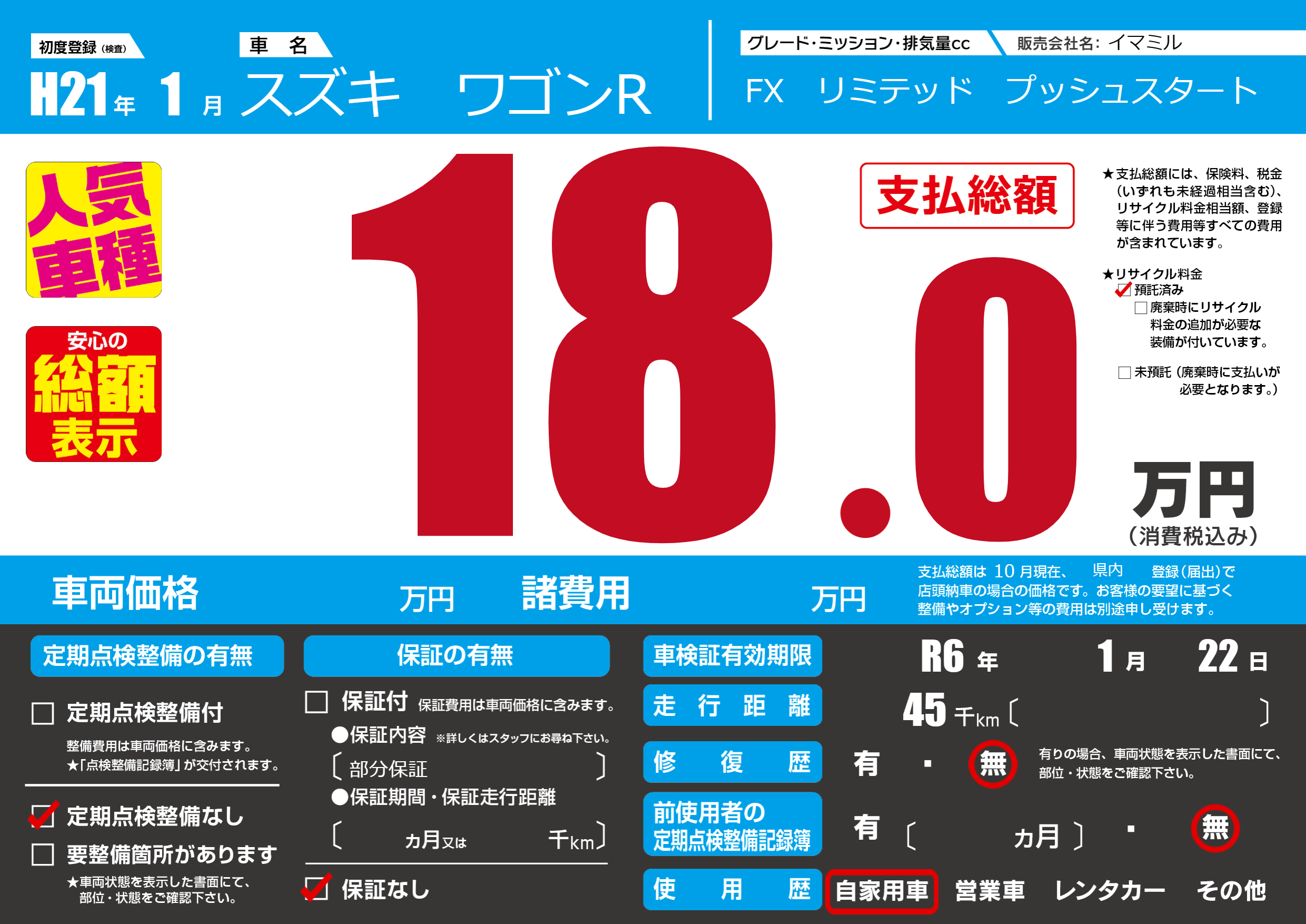 なし | 車検制限 | R6年1月22月 |