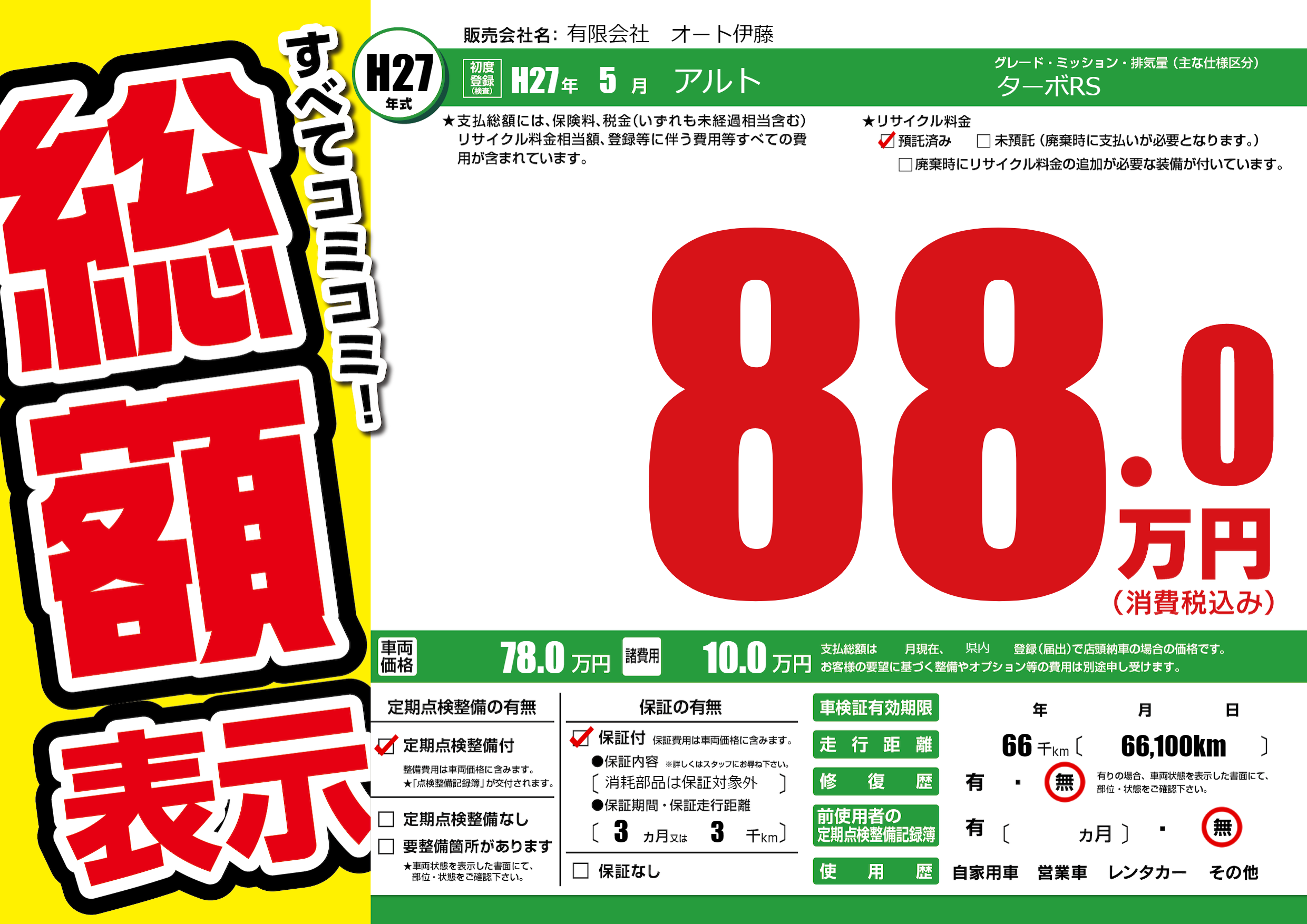 保証付き 保証内容(消耗部品は保証対象外) 3ヶ月または(3)千kmまで |