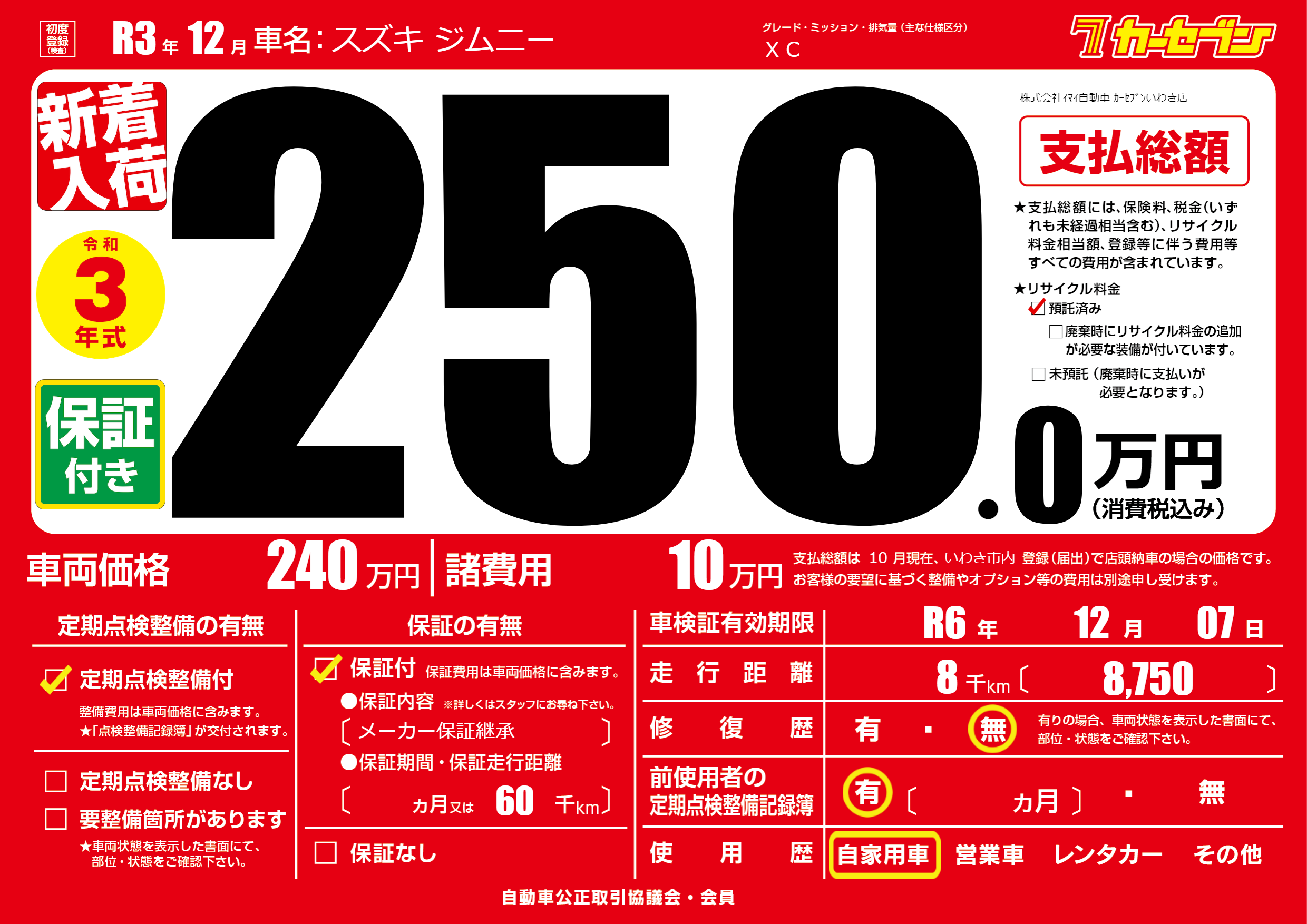 | 車検制限 | R6年 12月 07日 | ||