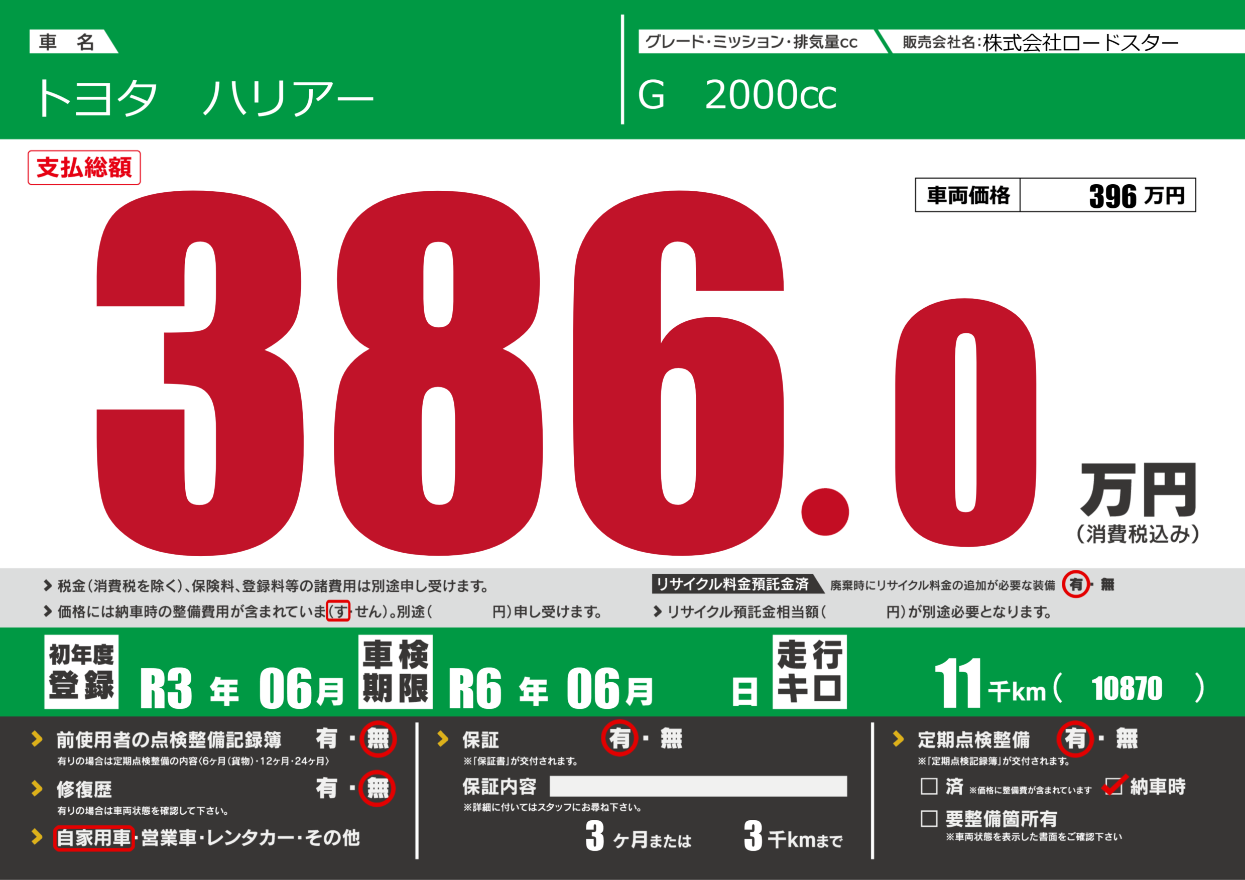 | 定期点検整備 | 定期点検整備あり 納車時あり | ||