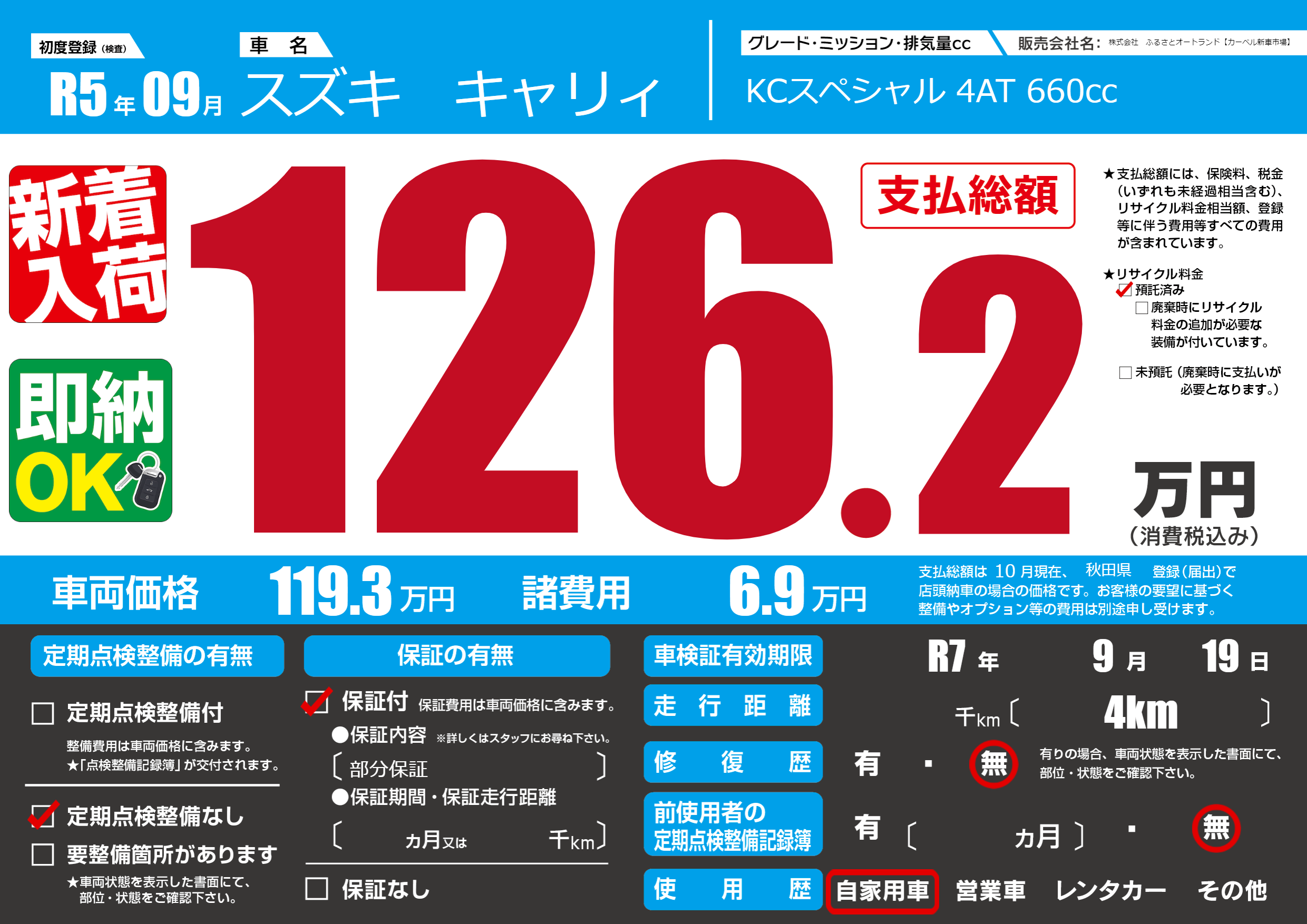 なし | 車検制限 | R7年9月19月 |
