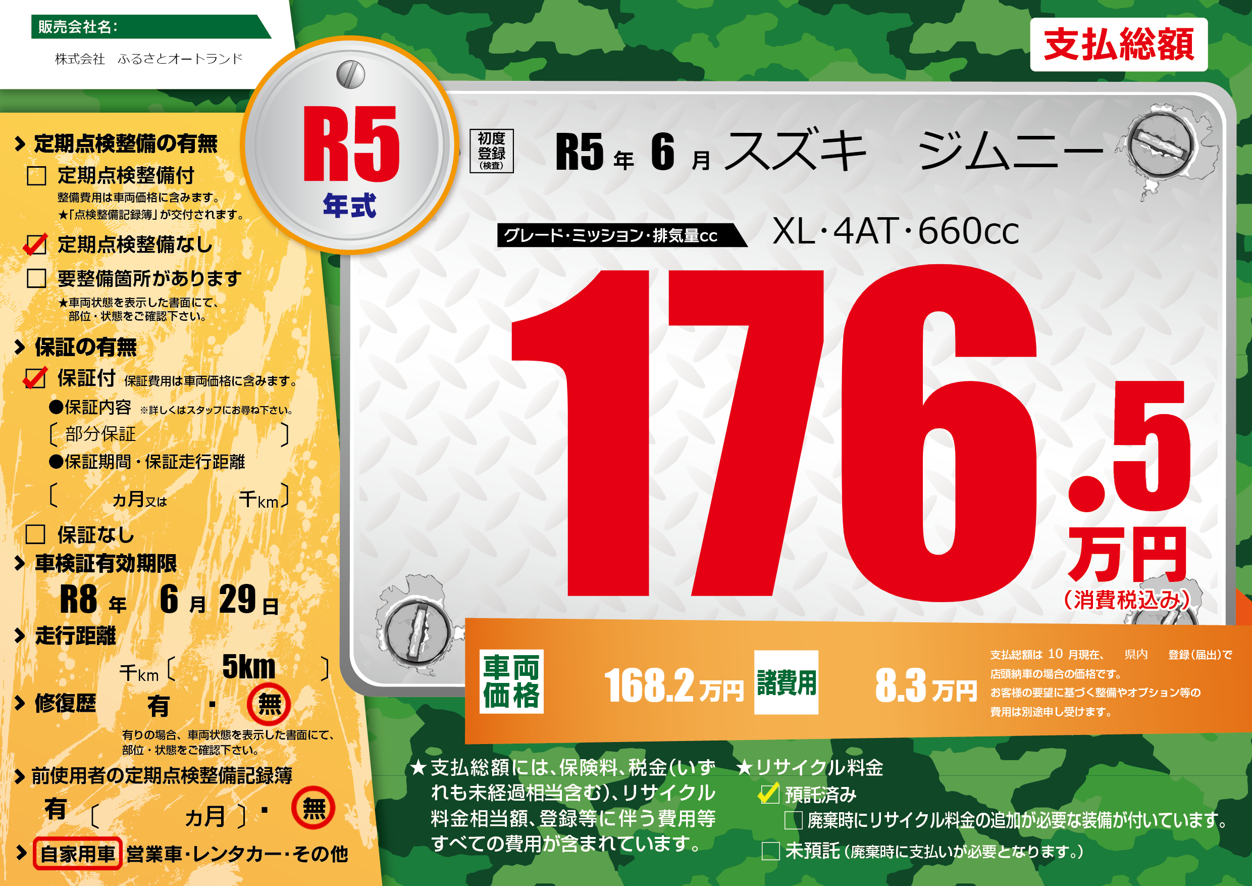| 走行キロ | - | 初年度登録 | R5年6月 |