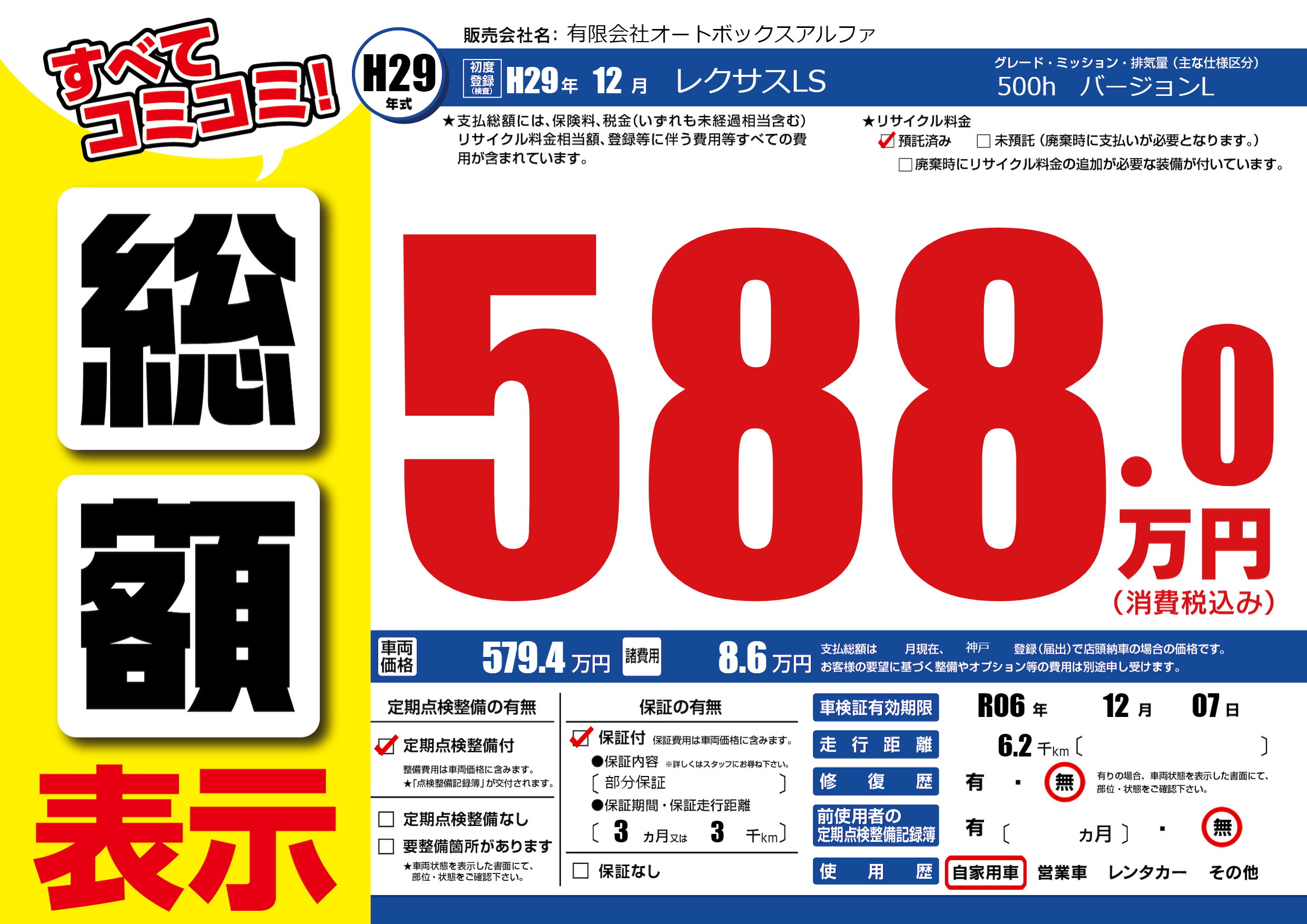 | 車名 | レクサスLS | グレード ミッション 排気量 |