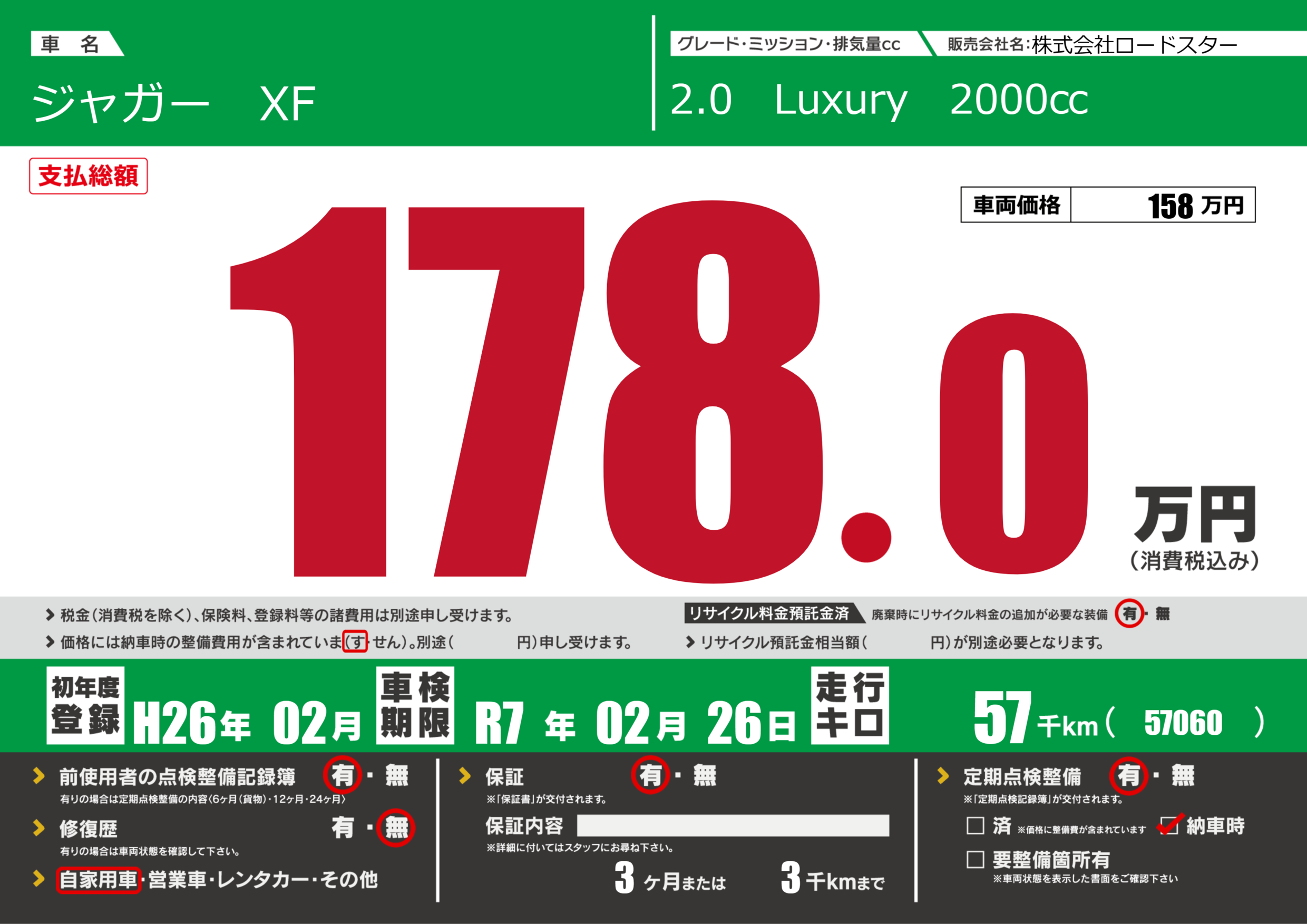 | 車検制限 | R7年 02月 26日 | ||
