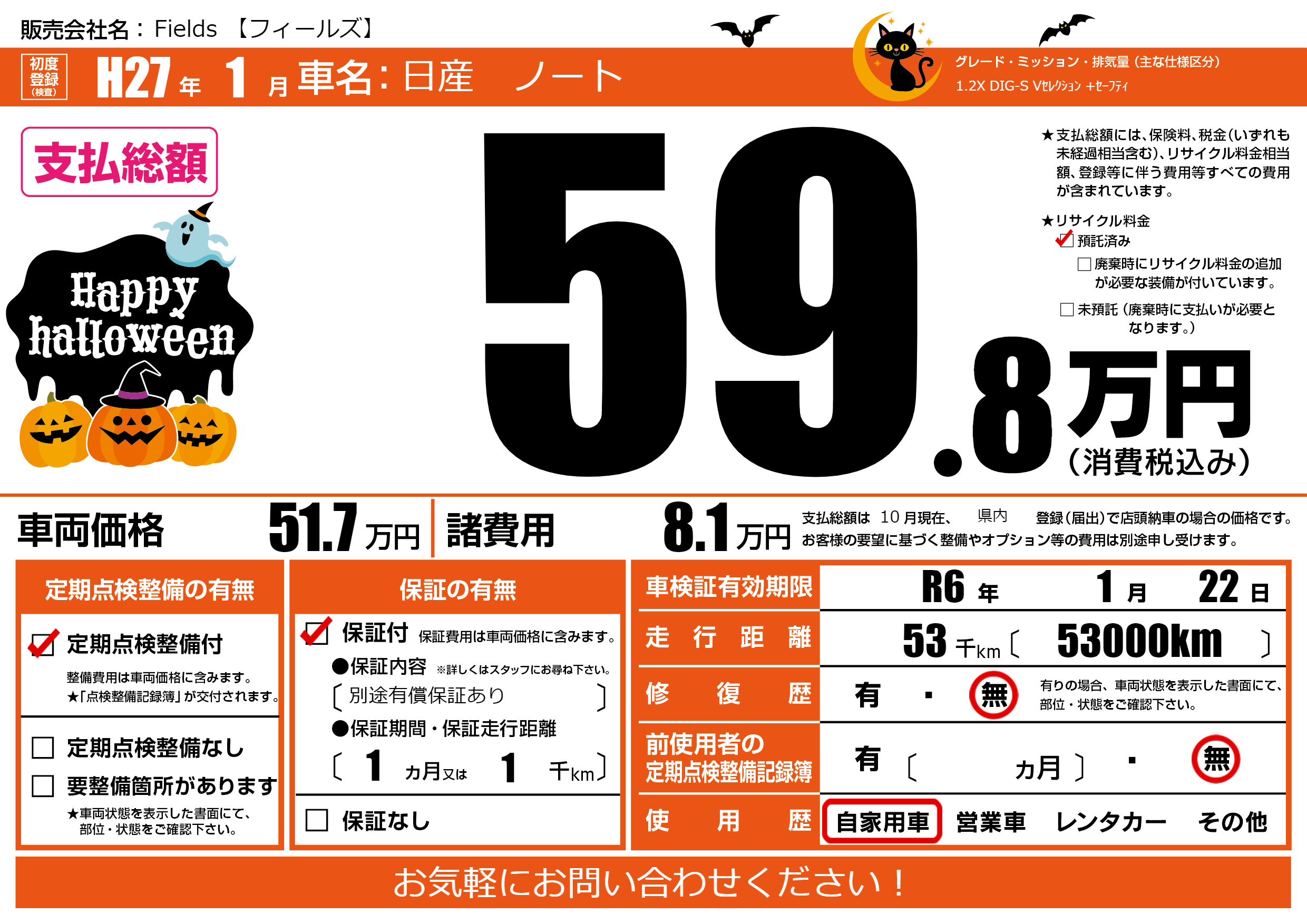 | 車名 | 日産 ノート | グレード ミッション 排気量 |