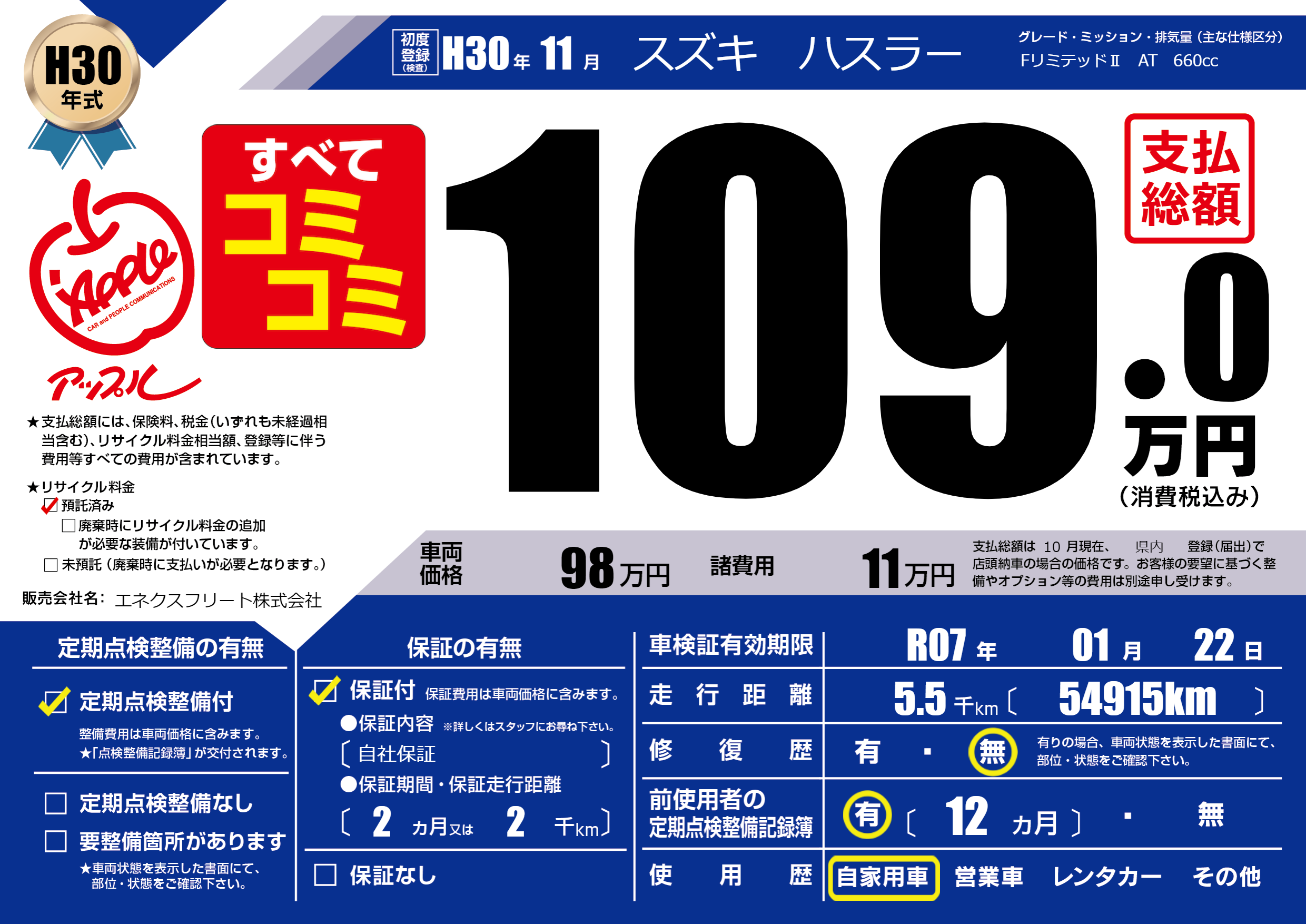 | 車検制限 | R07年 01月 22日 | ||
