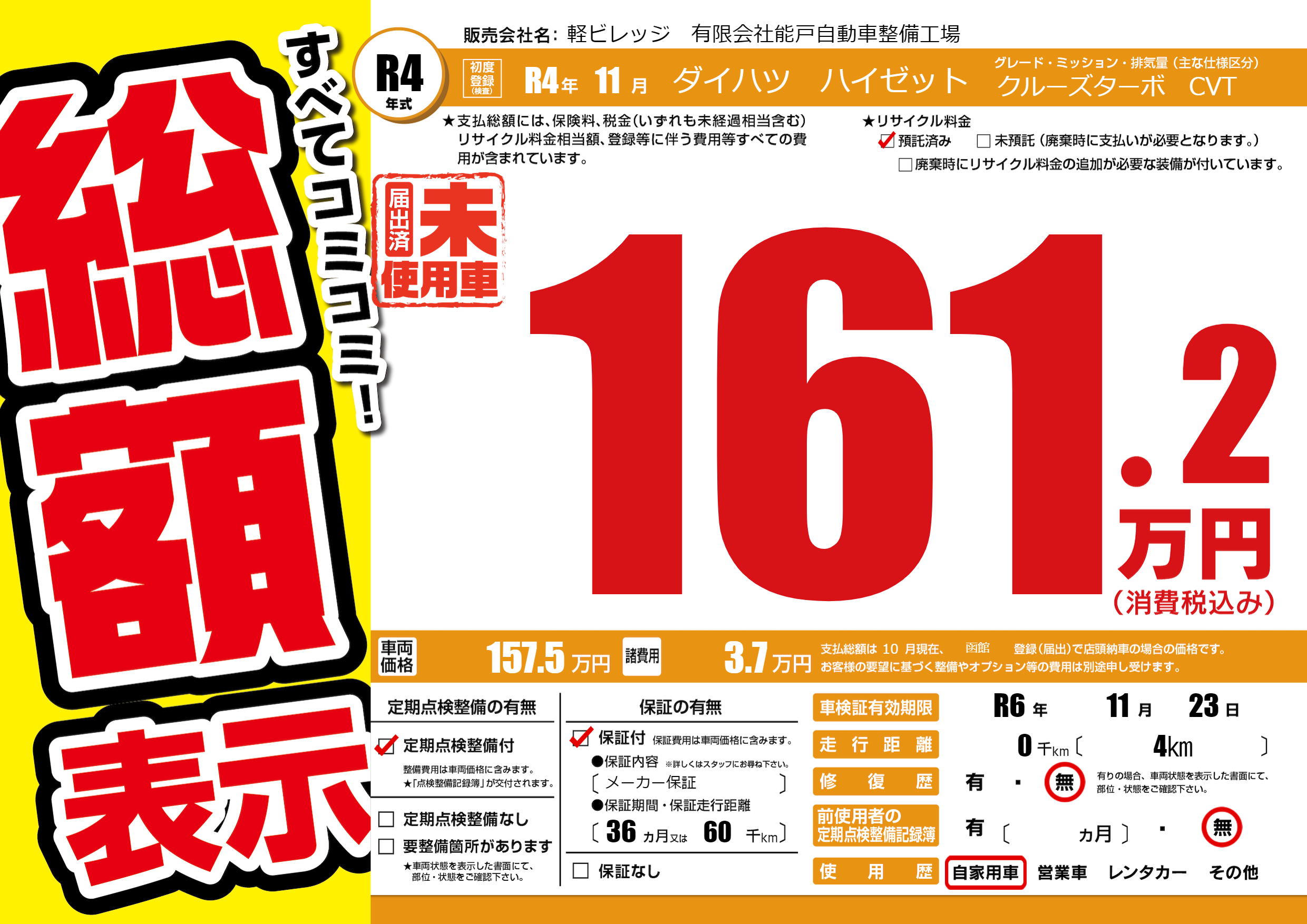 | 走行キロ | - | 初年度登録 | R4年11月 |