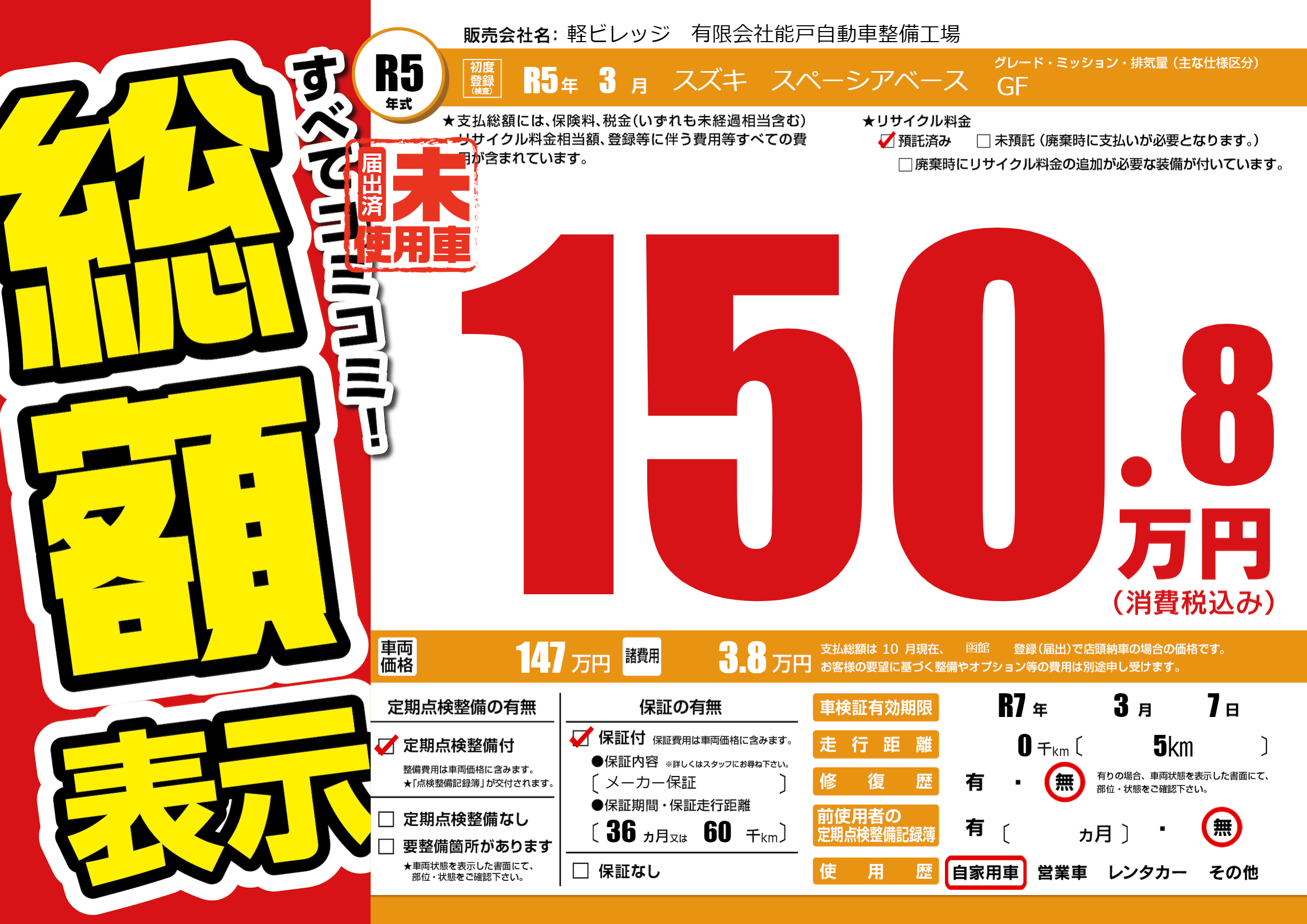 | 車検制限 | R7年 3月 7日 | ||