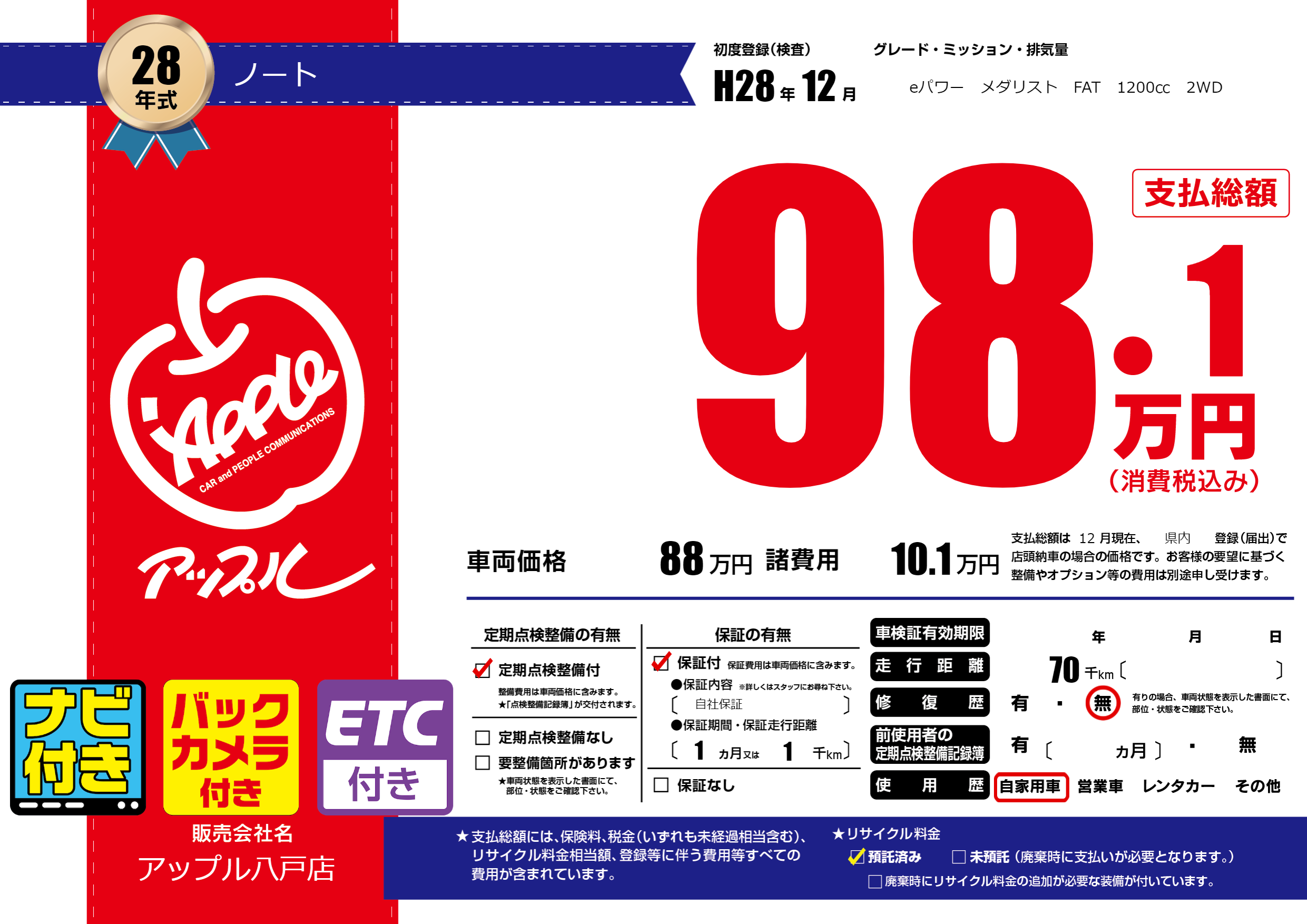 保証付き 保証内容( 自社保証) 1ヶ月または(1)千kmまで |