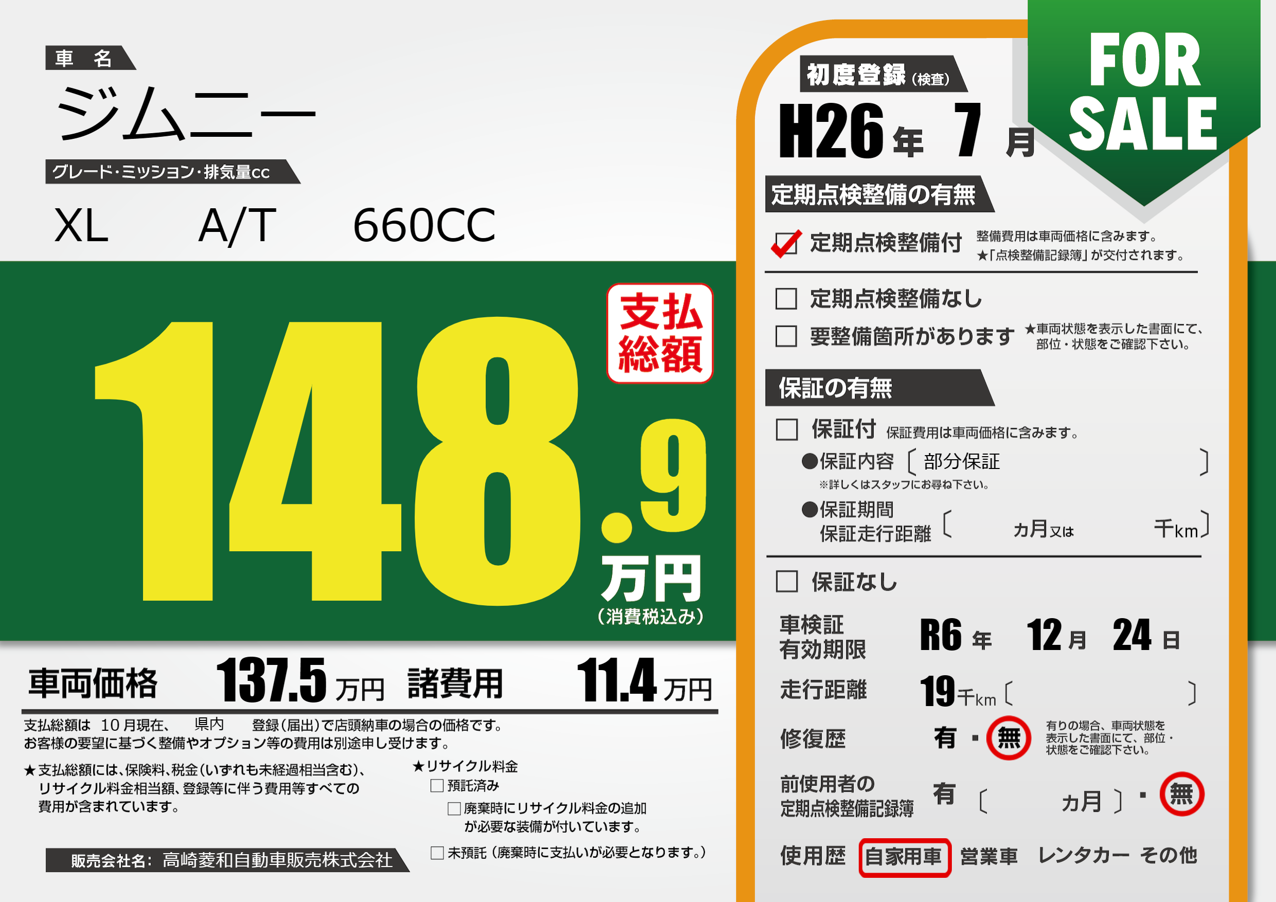 | 車検制限 | R6年 12月 24日 | ||