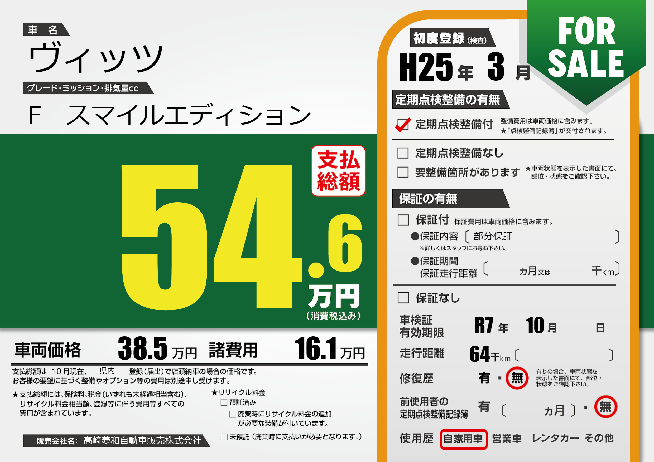 | 車名 | ヴィッツ | グレード ミッション 排気量 |