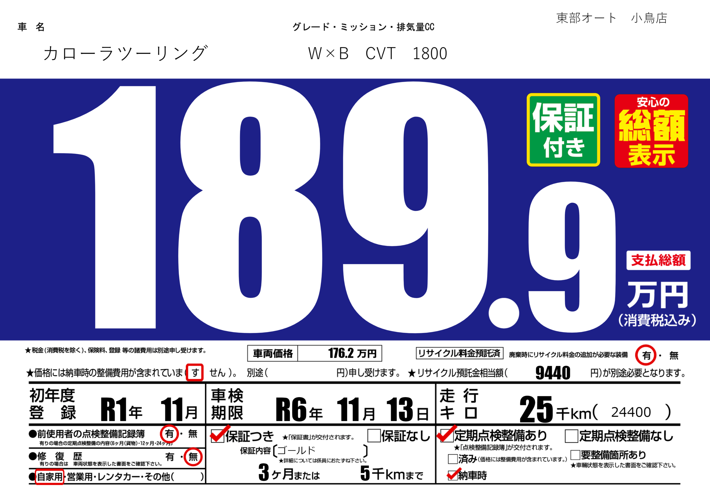 保証付き 保証内容(ゴールド) 3ヶ月または(5)千kmまで |