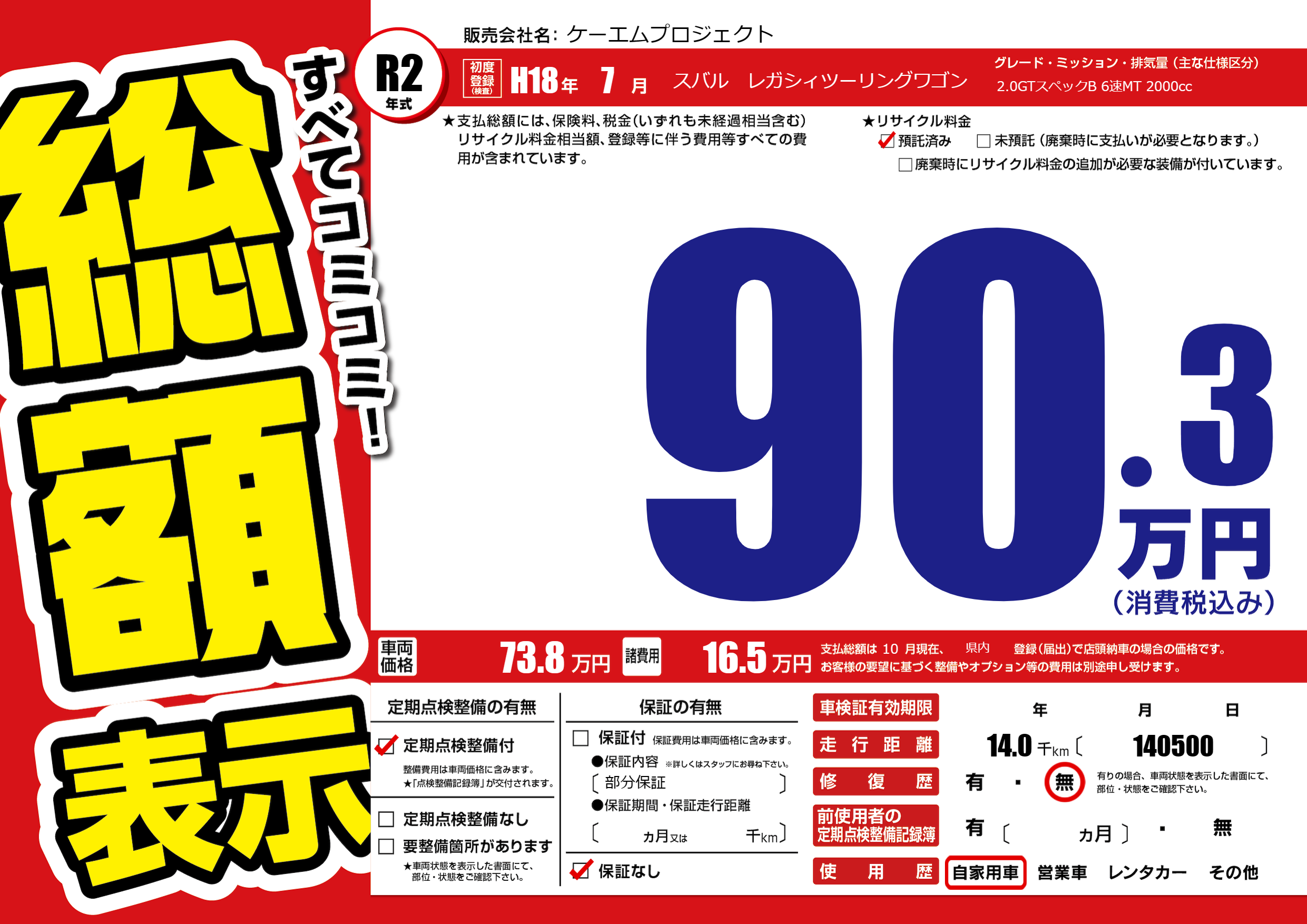 | 定期点検整備 | 定期点検整備あり | ||