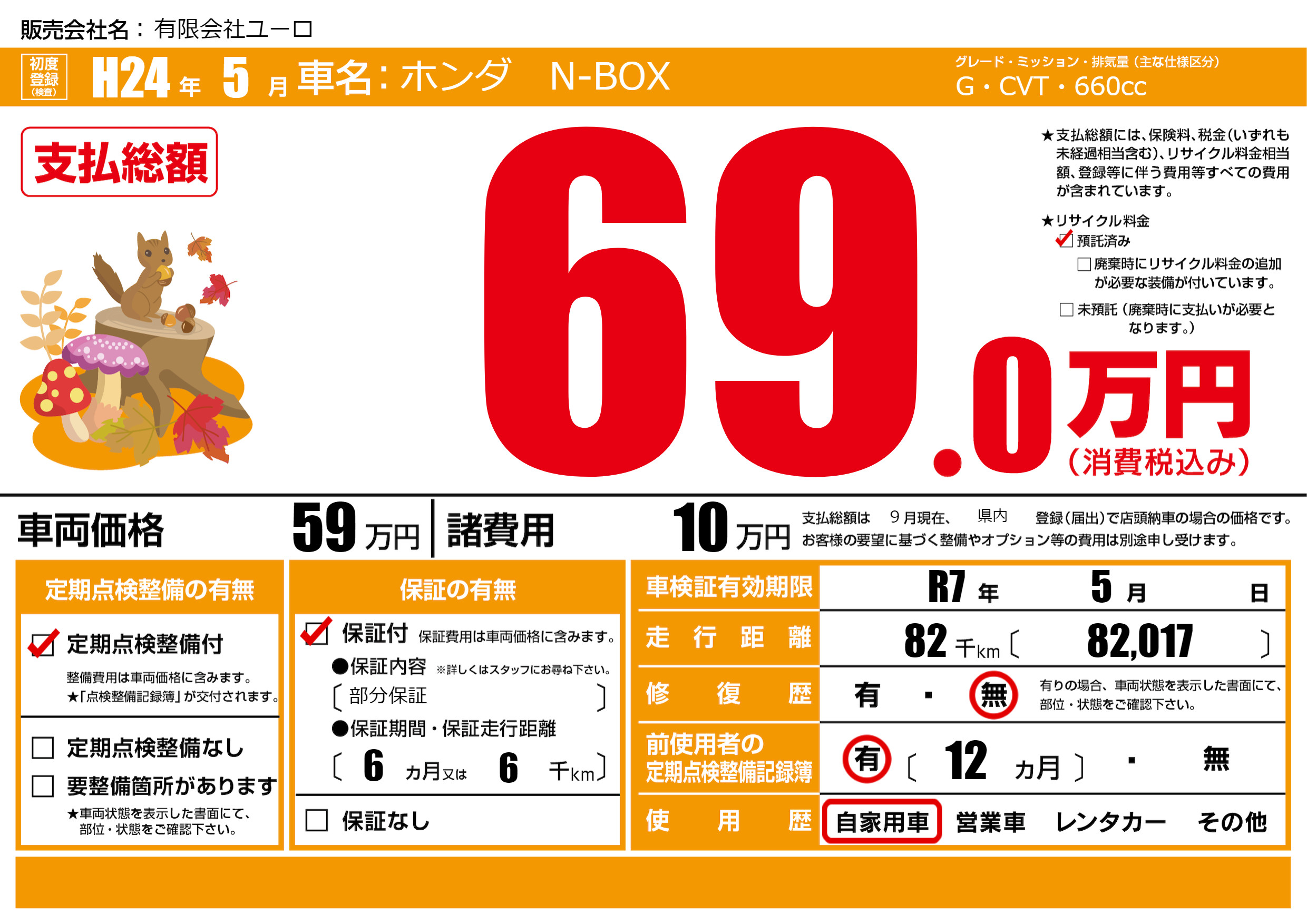 | 車検制限 | R7年 5月 - 日 | ||