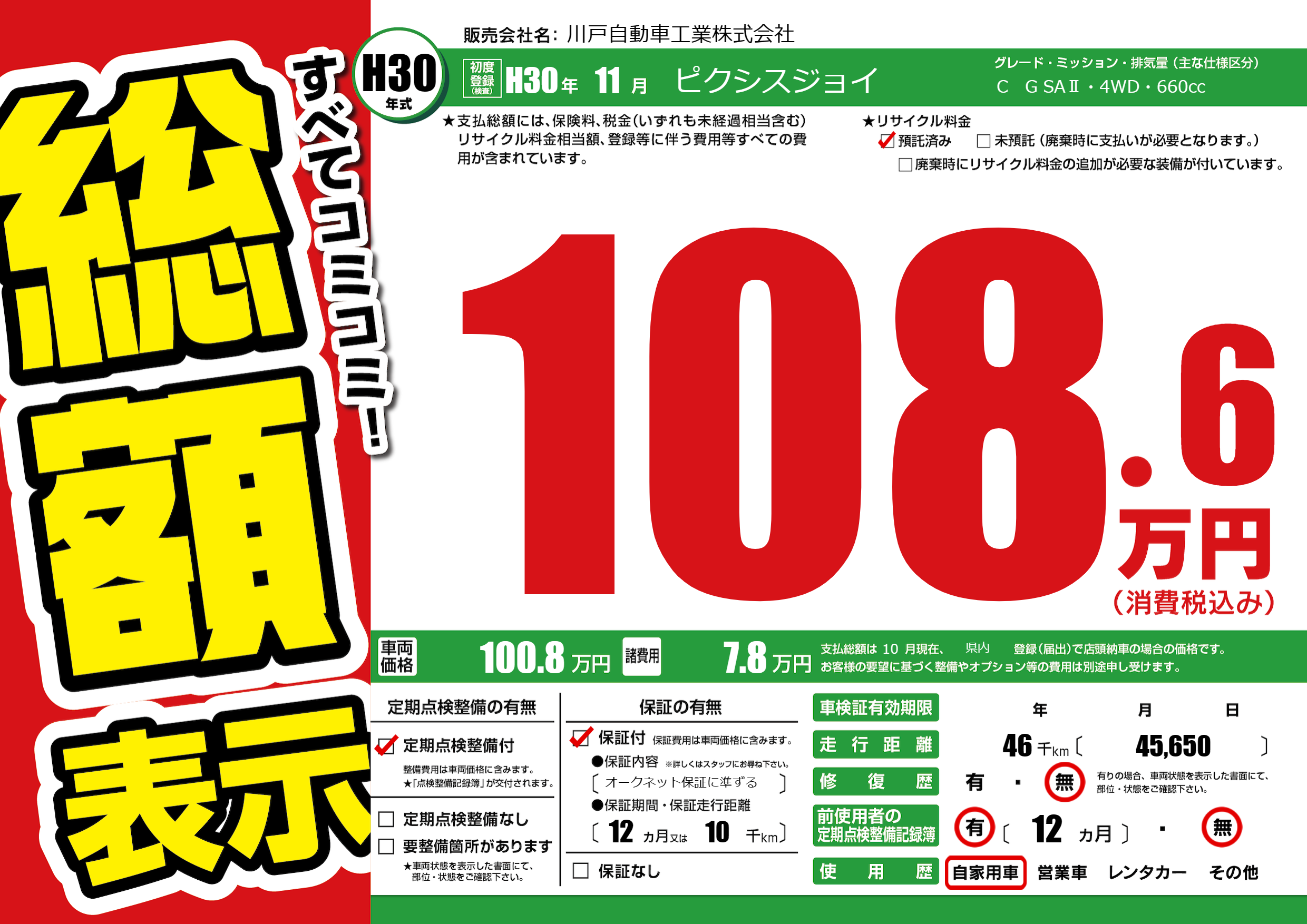 | 車名 | ピクシスジョイ | グレード ミッション 排気量 |