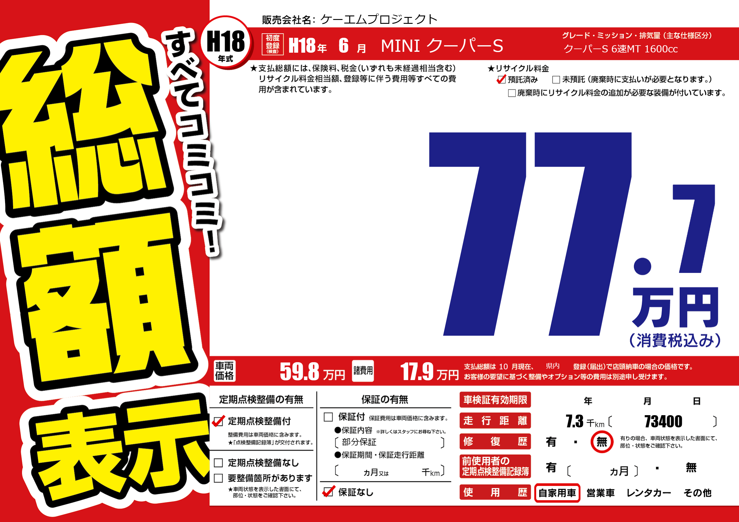 | 初年度登録 | H18年6月 | ||