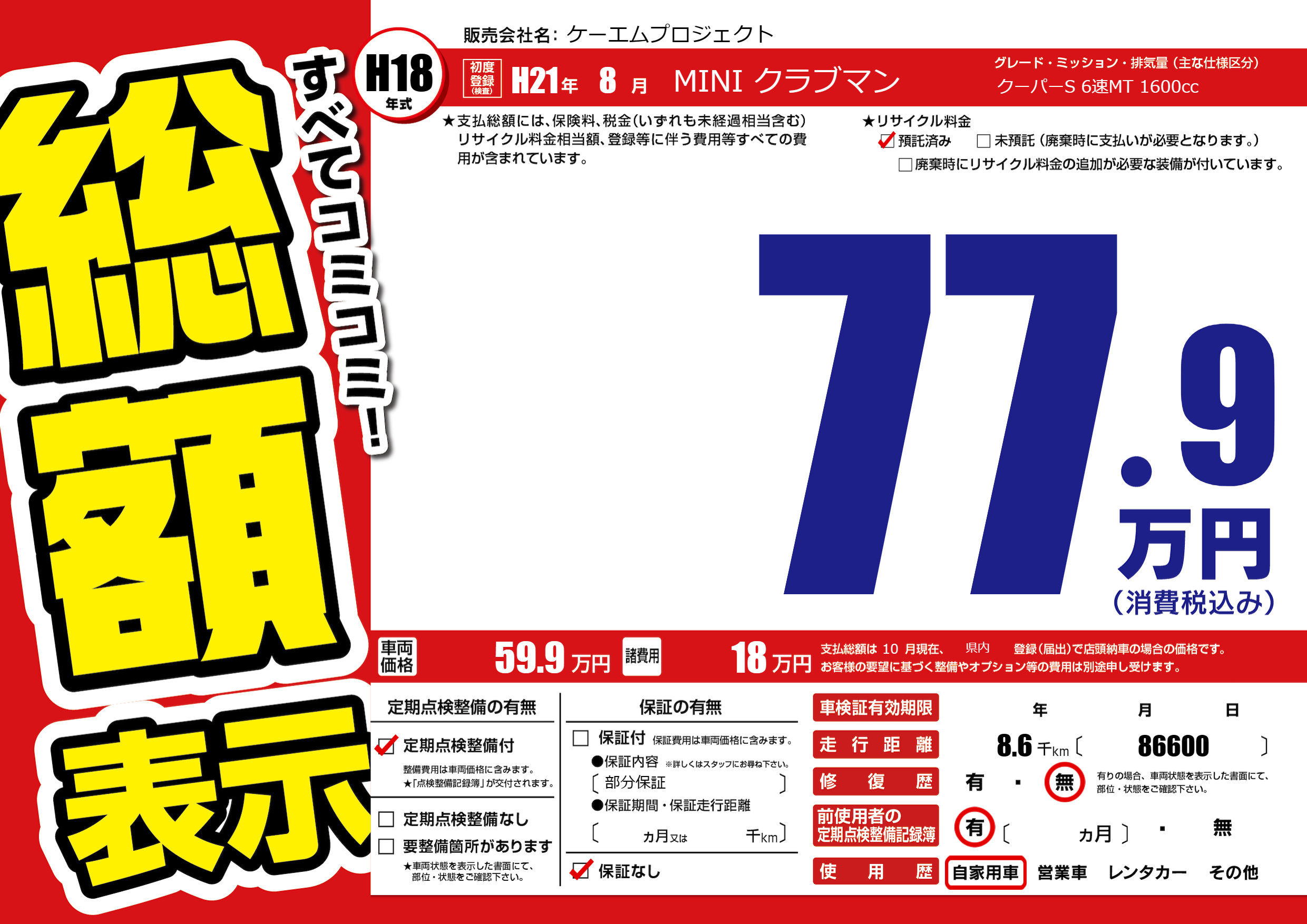 | 車検制限 | - 年 - 月 - 日 | ||