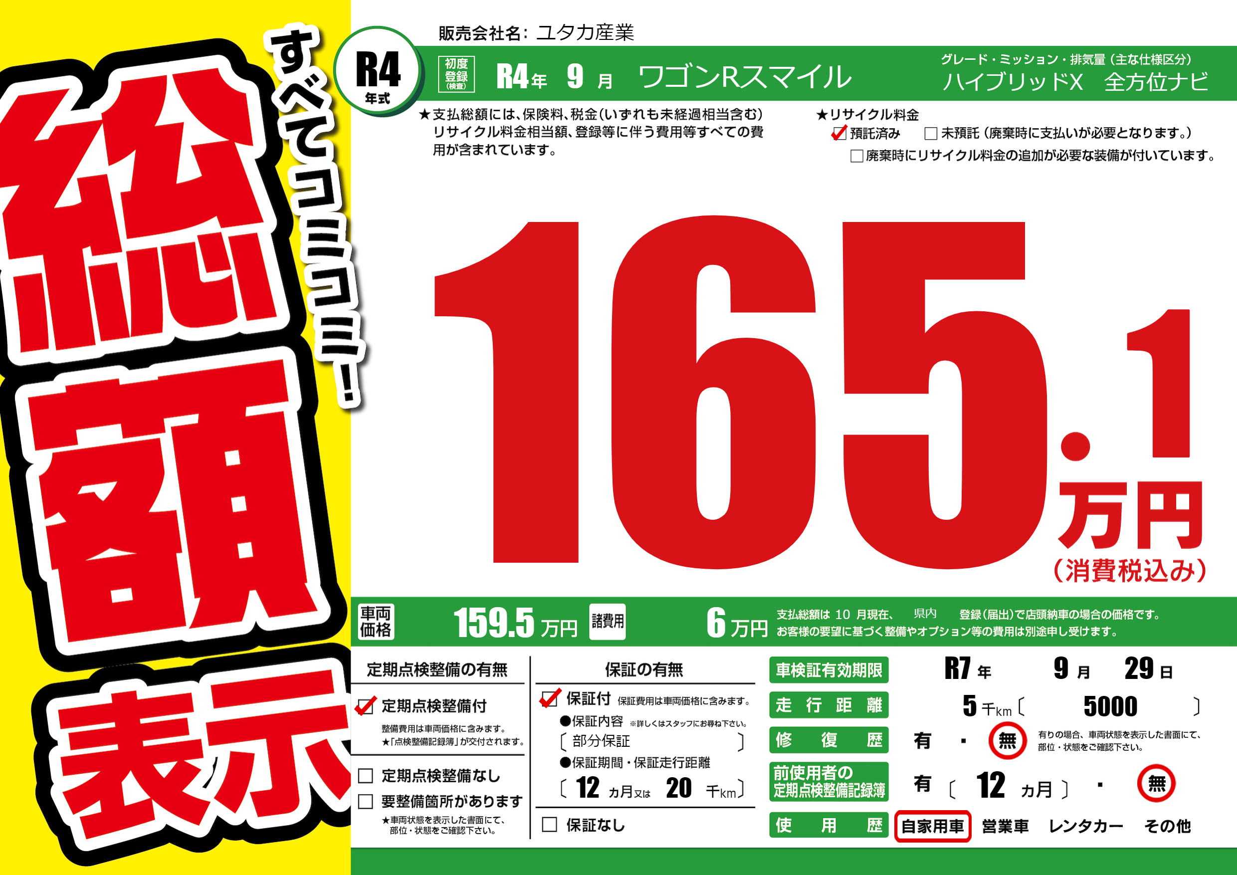 | 走行キロ | 0.5万km | 初年度登録 | R4年9月 |