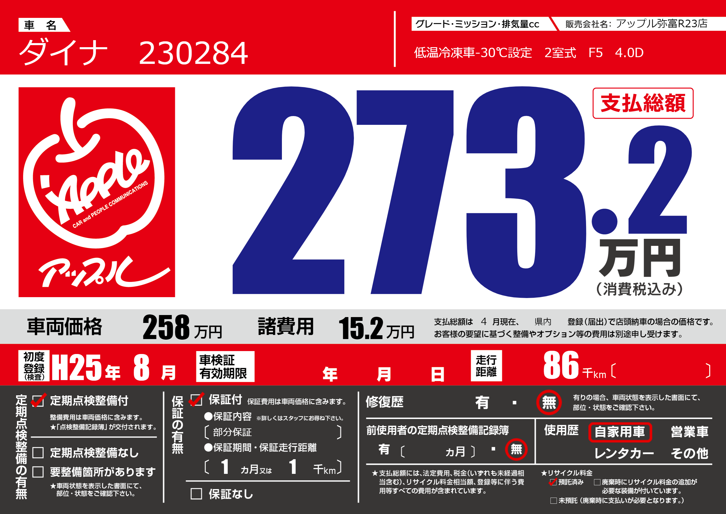 | 定期点検整備 | 定期点検整備あり | ||