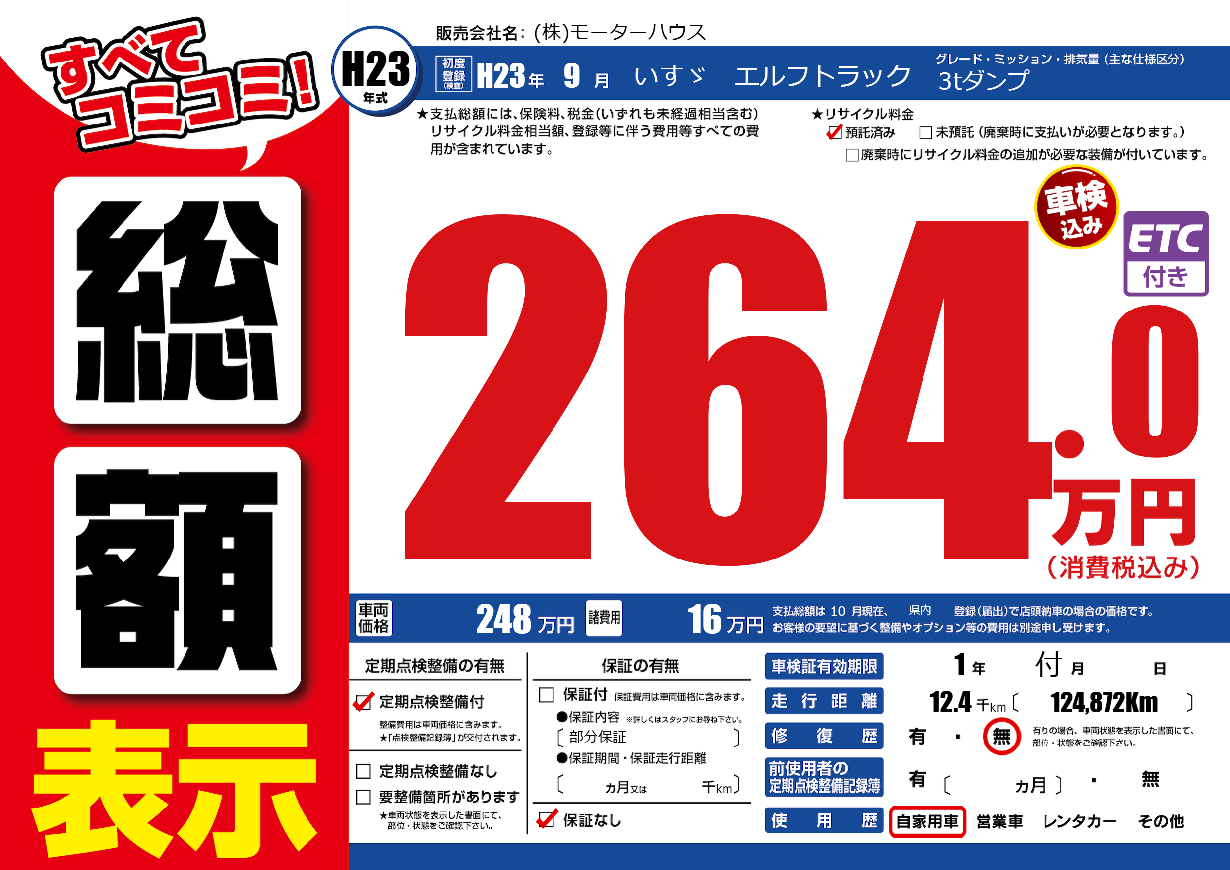 保証なし 保証内容(部分保証) ---ヶ月または()千kmまで |