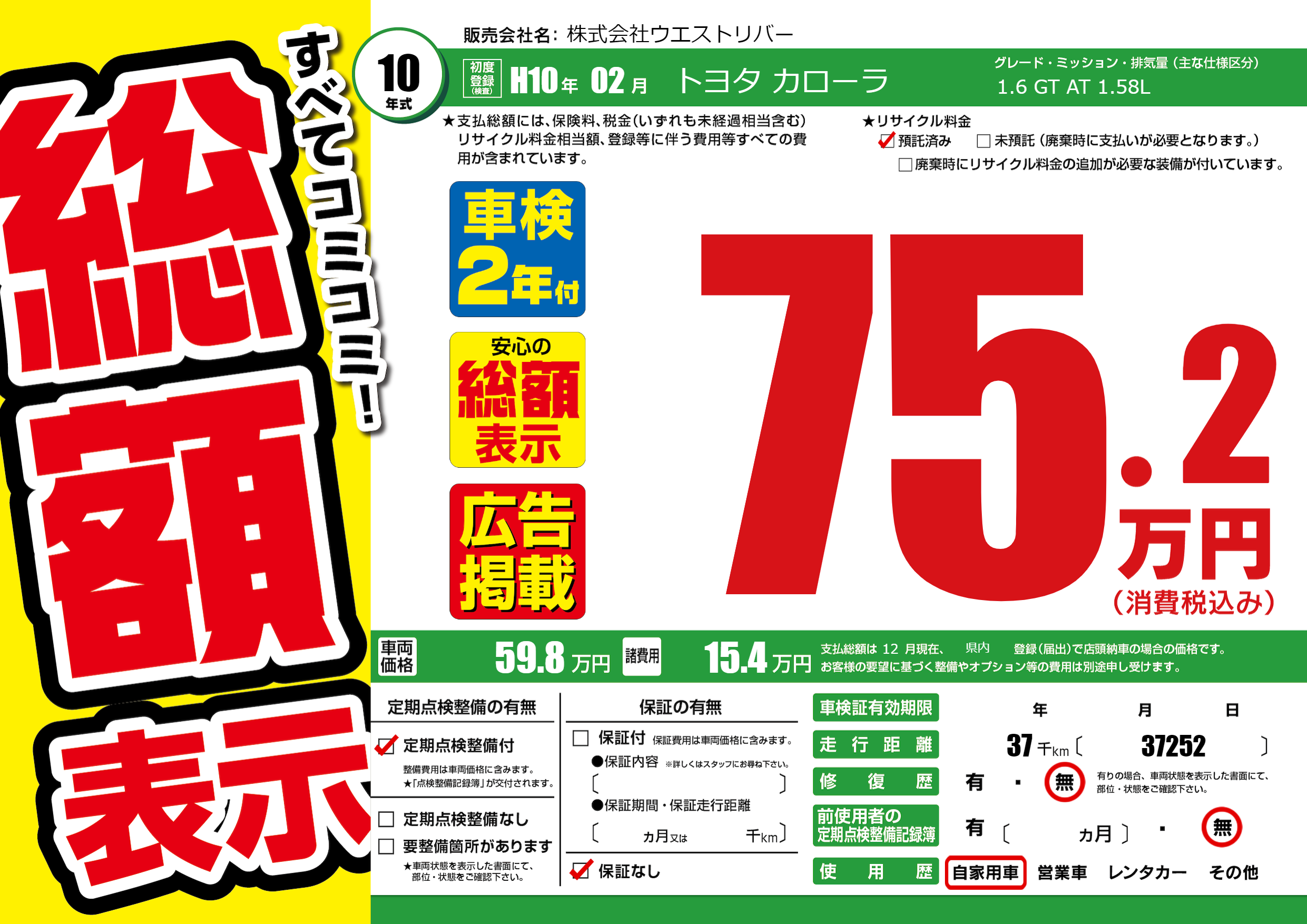 | 車検制限 | - 年 - 月 - 日 | ||