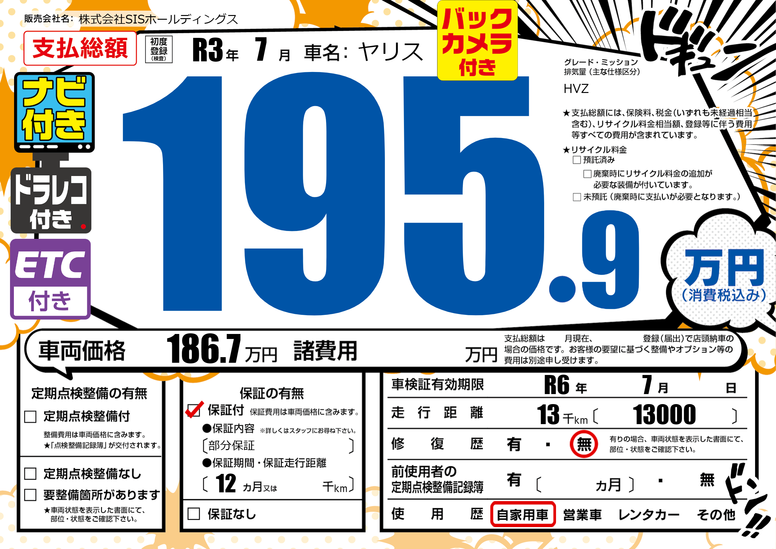 なし | 車検制限 | R6年7月---月 |