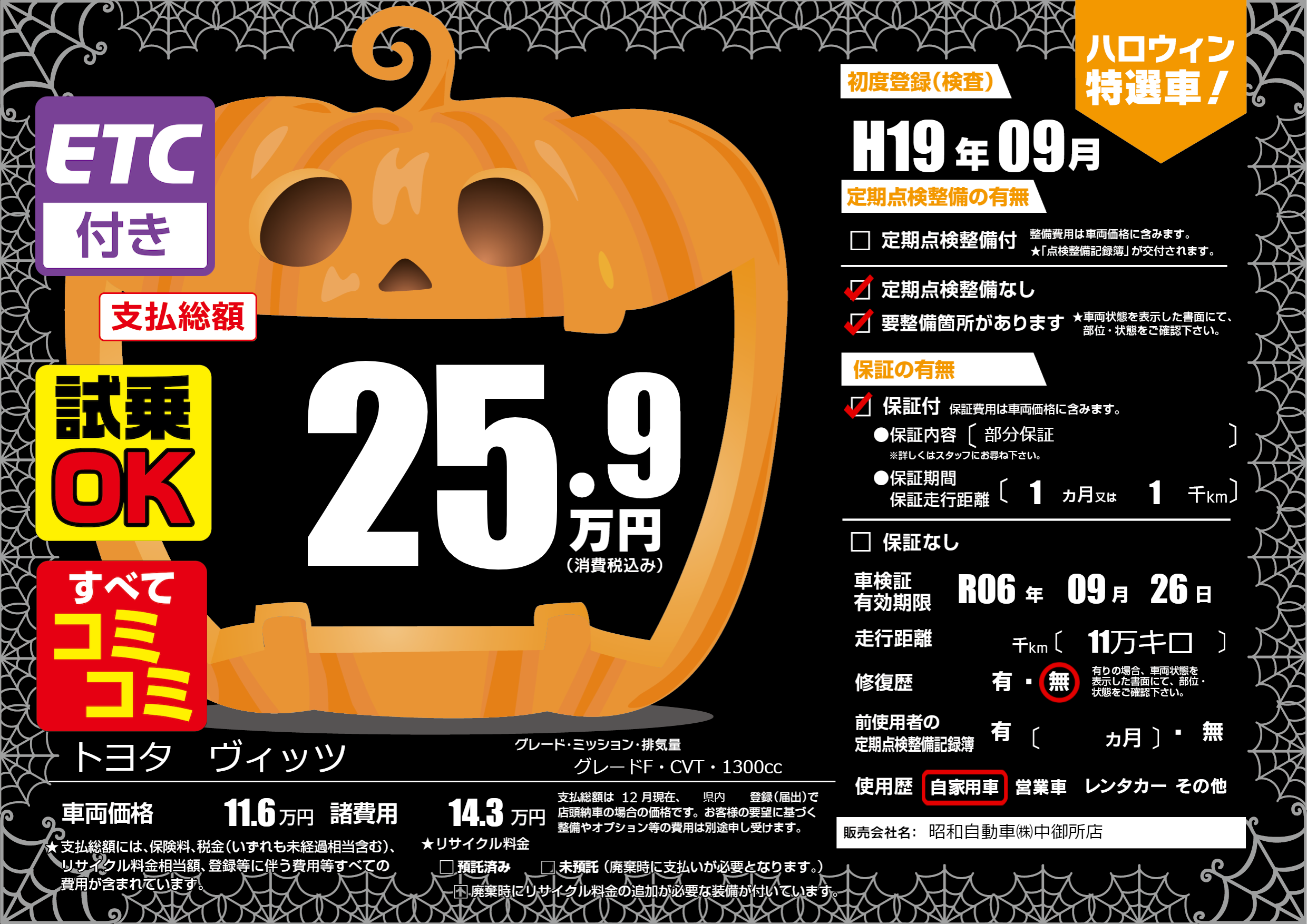 | 走行キロ | - | 初年度登録 | H19年09月 |