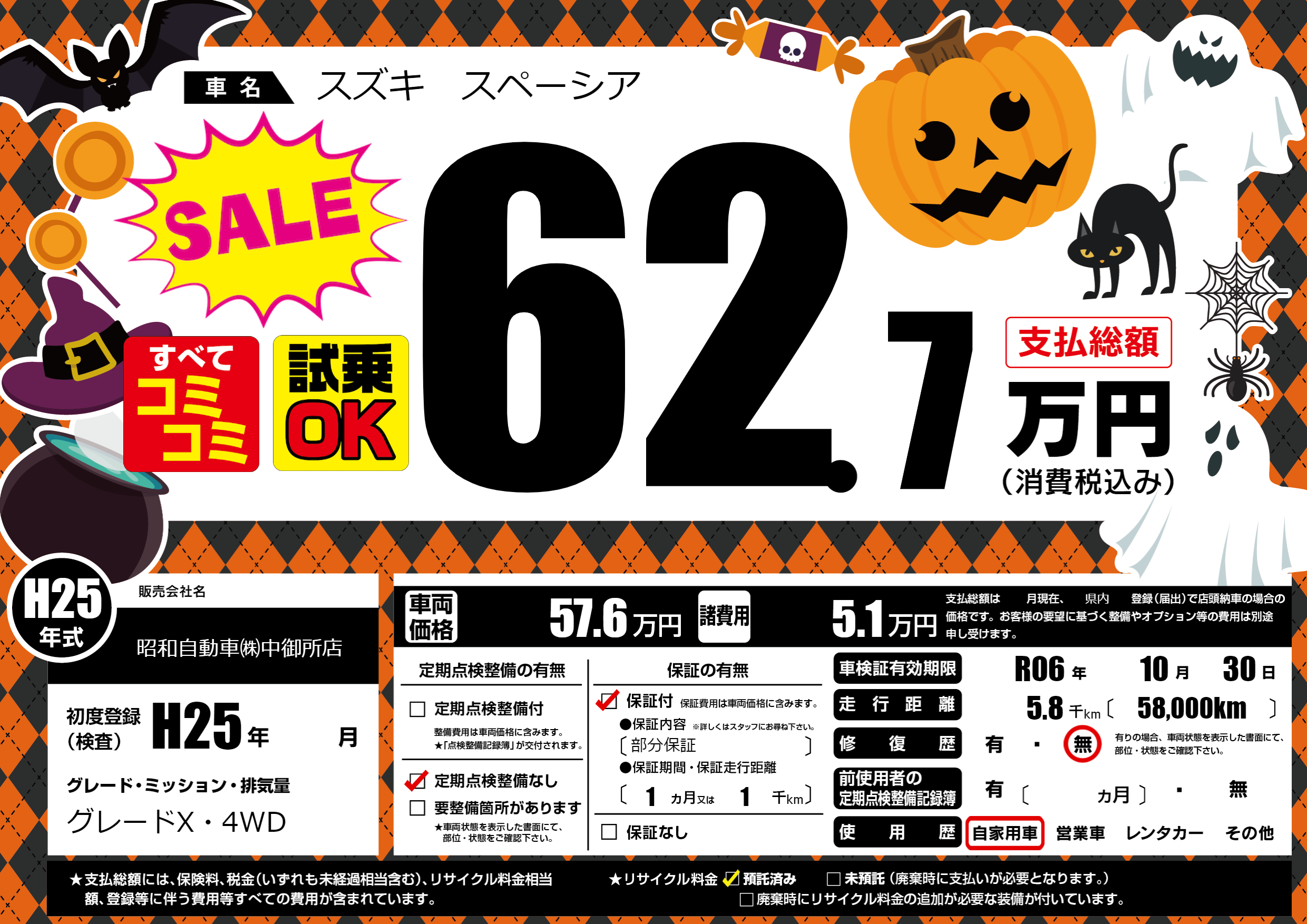 | 車名 | スズキ スペーシア | グレード ミッション 排気量 |
