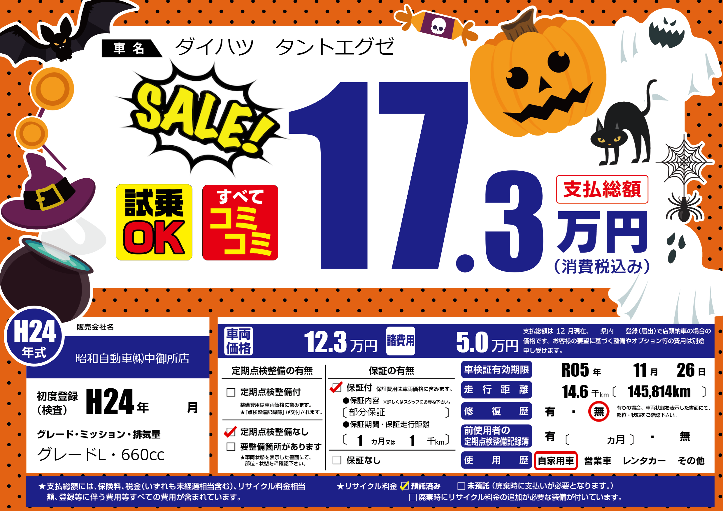 | 走行キロ | 1.4万km | 初年度登録 | H24年---月 |