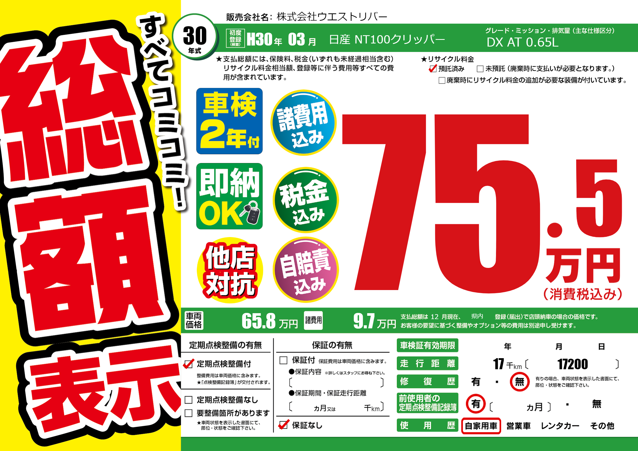 | 走行キロ | 1.7万km | 初年度登録 | H30年03月 |