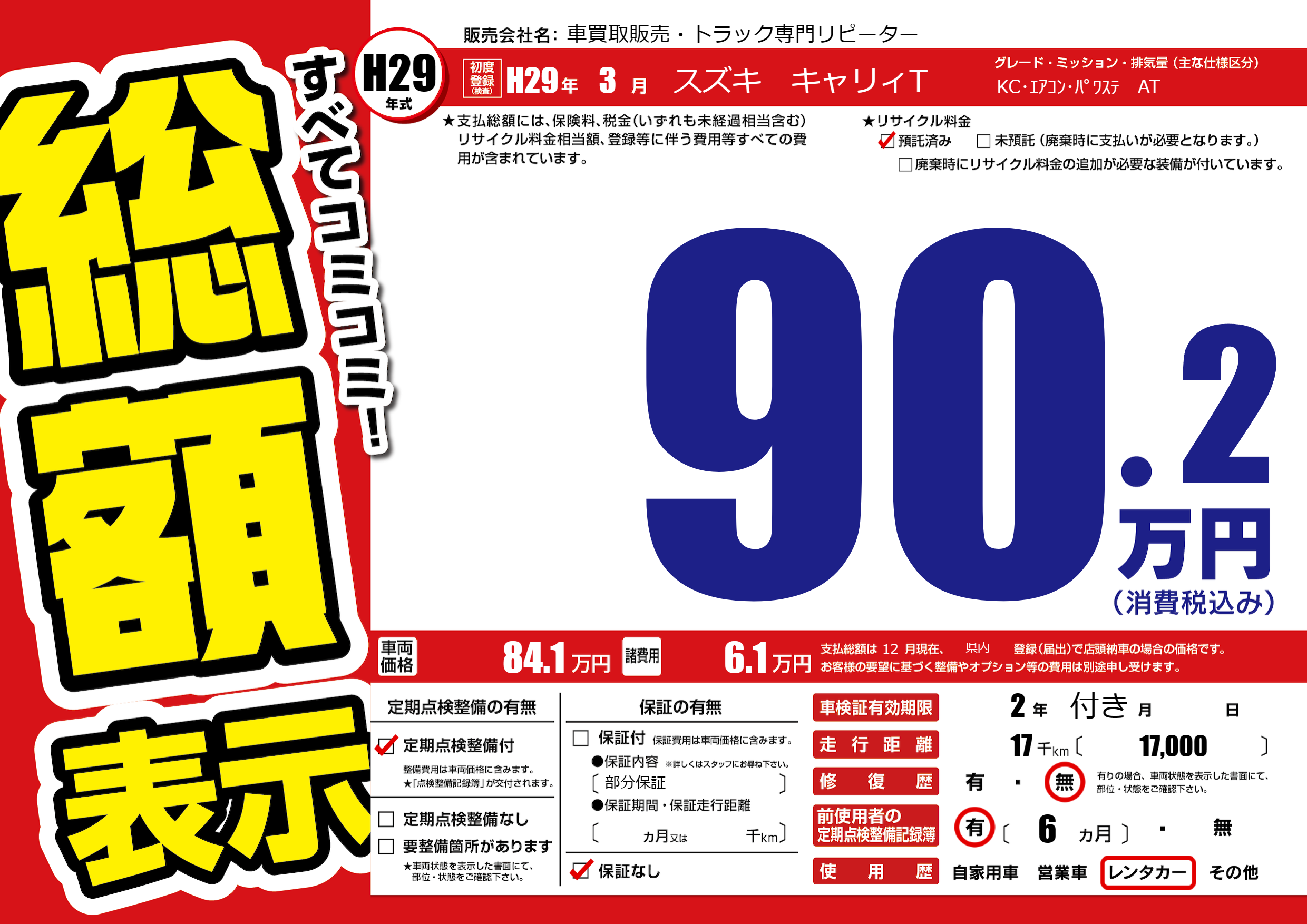 保証なし 保証内容(部分保証) ---ヶ月または()千kmまで |
