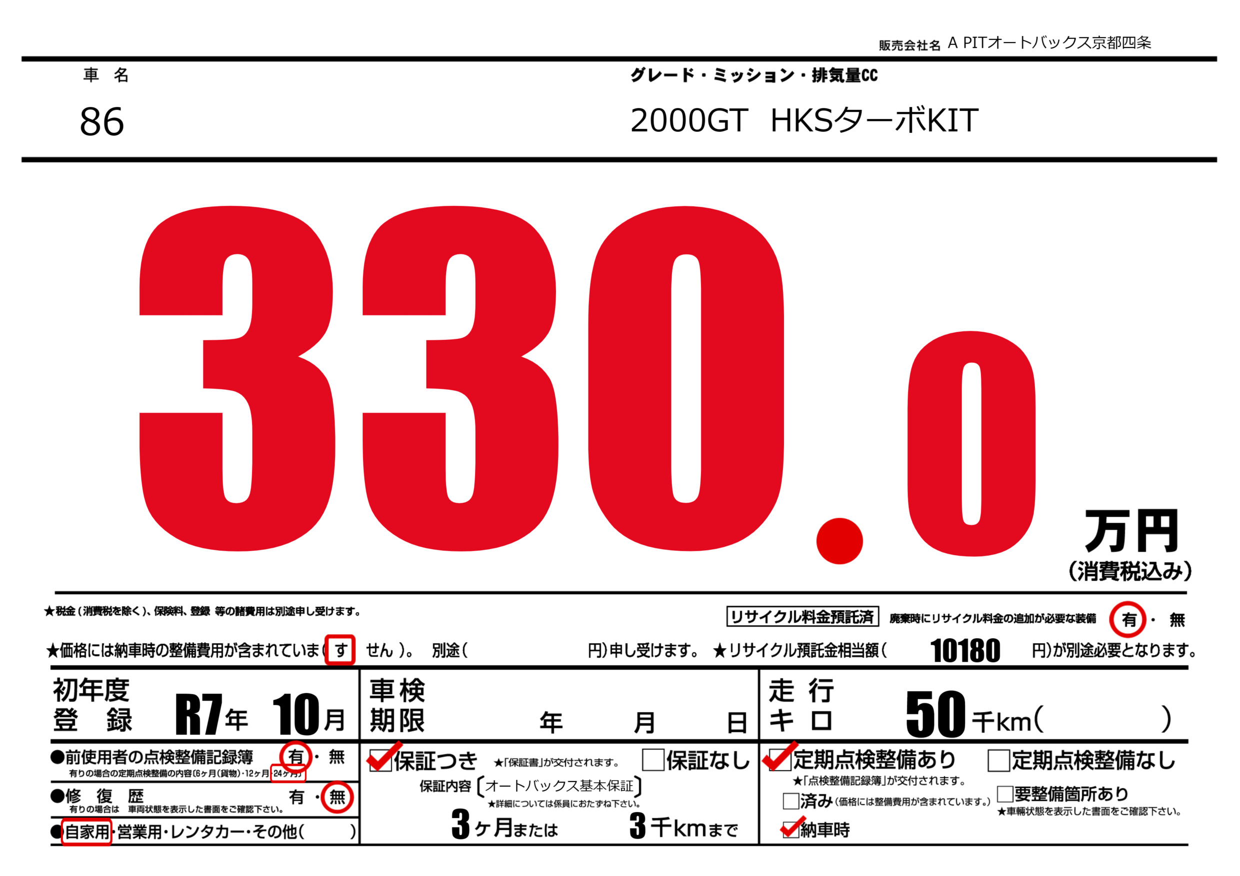 | 車検制限 | - 年 - 月 - 日 | ||