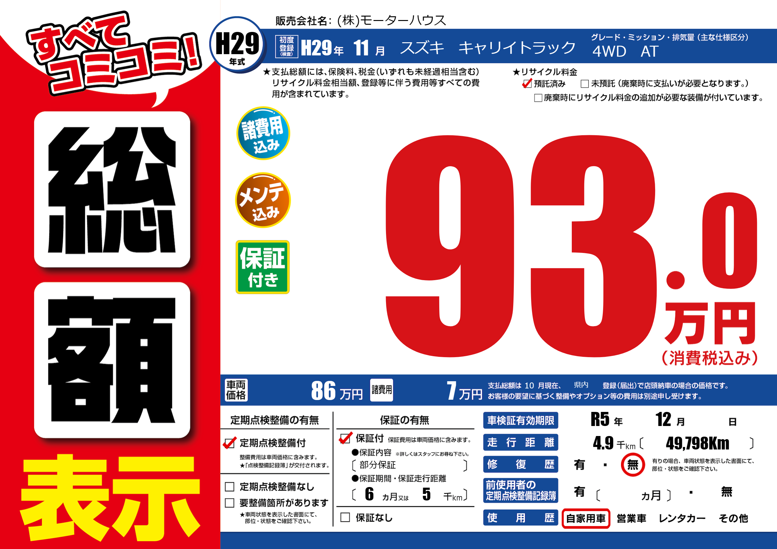 保証なし 保証内容(部分保証) 6ヶ月または(5)千kmまで |