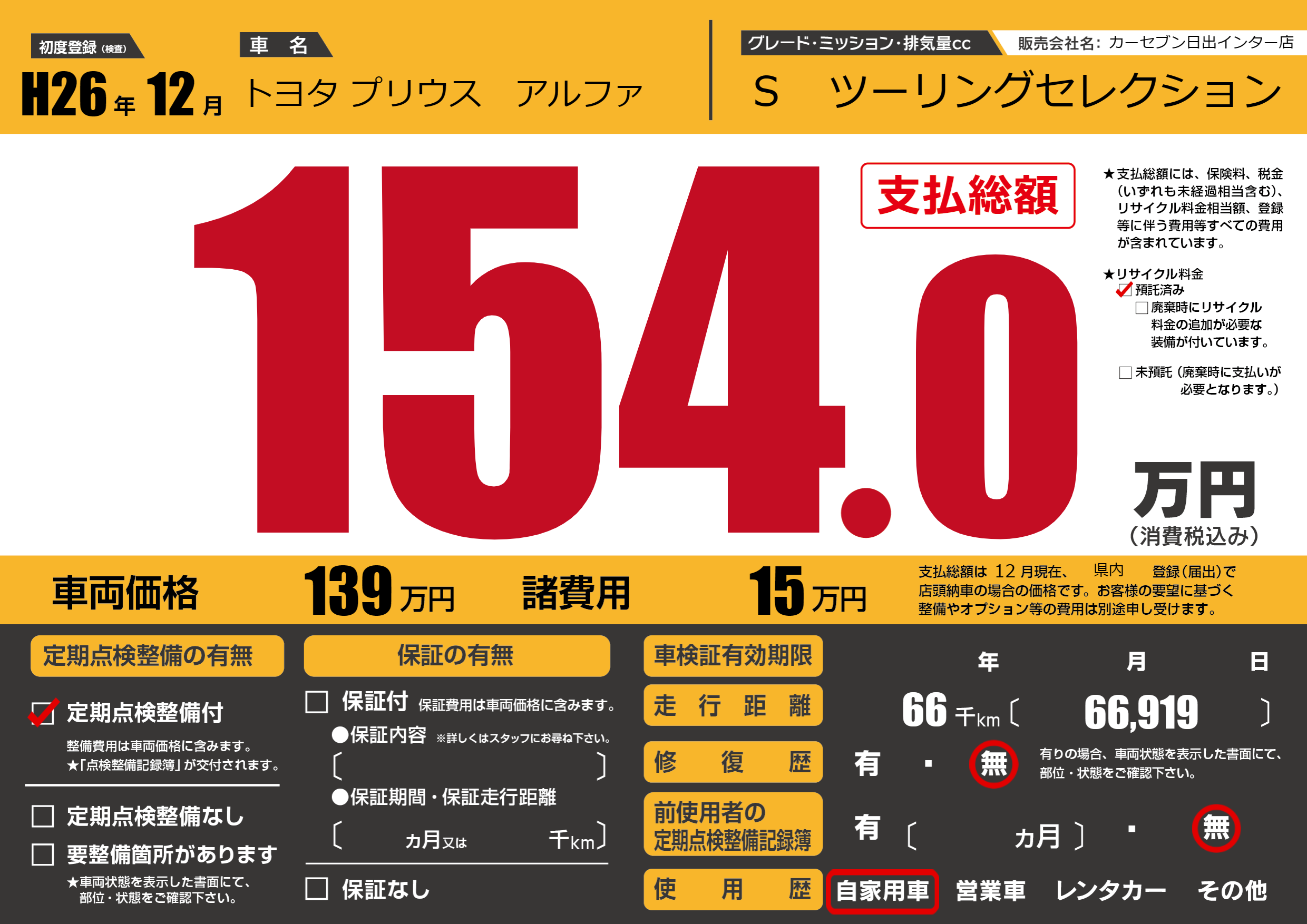 | 初年度登録 | H26年12月 | ||