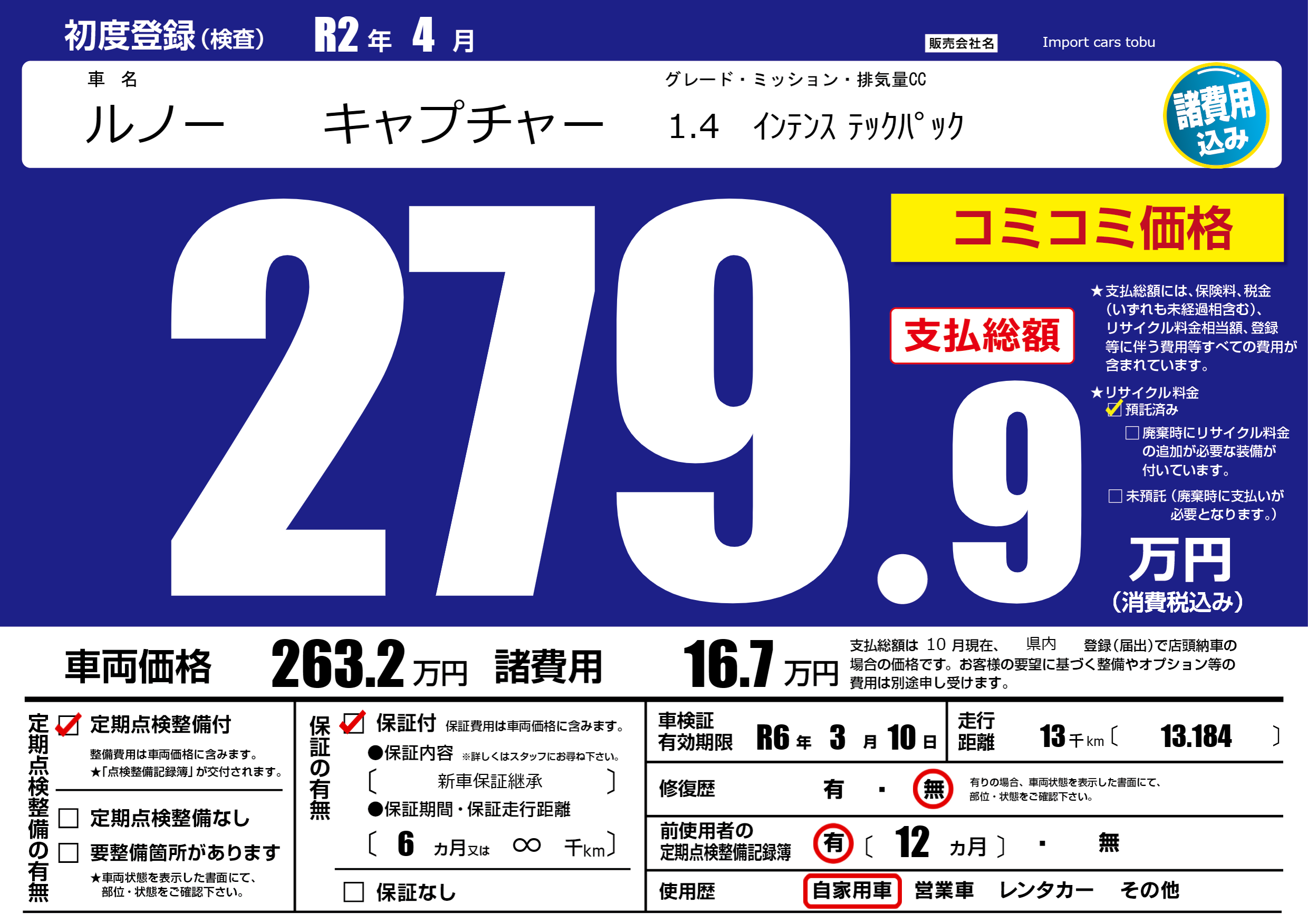 | 車検制限 | R6年 3月 10日 | ||