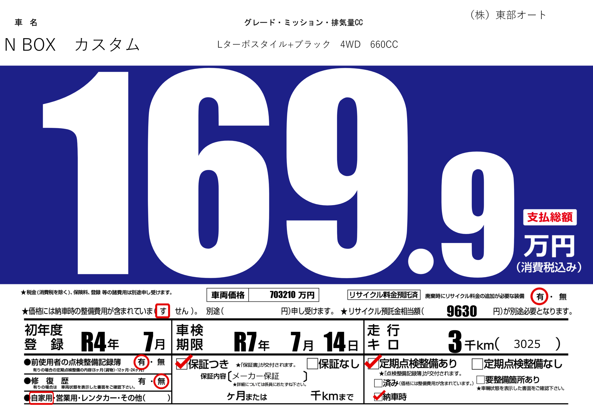 | 車名 | N BOX カスタム | グレード ミッション 排気量 |