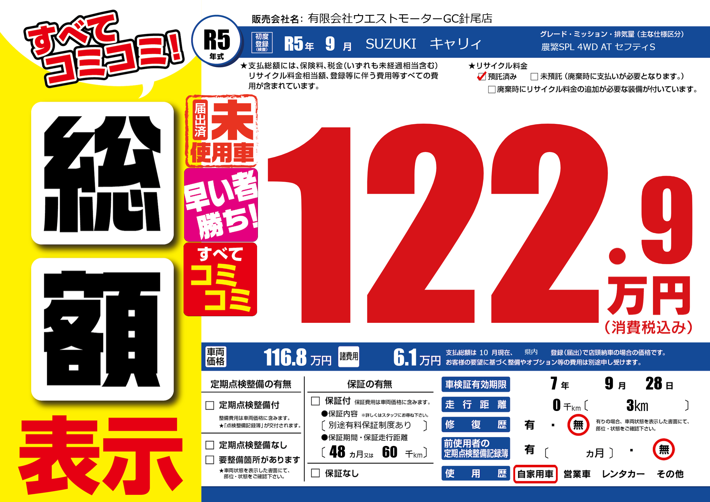 | 初年度登録 | R5年9月 | ||