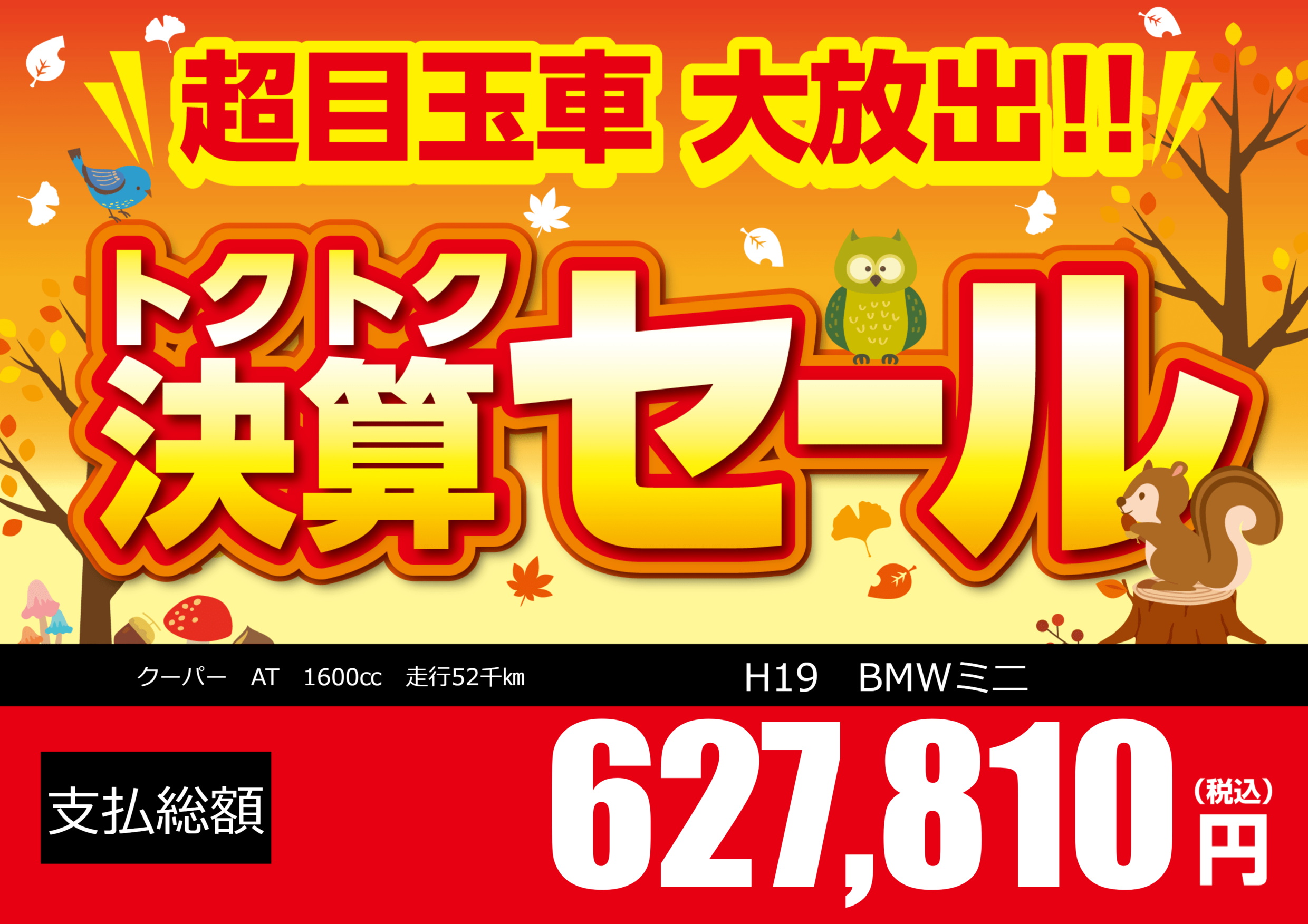 | 車名 | クーパー AT 1600㏄ 走行52千㎞ | グレード ミッション 排気量 |