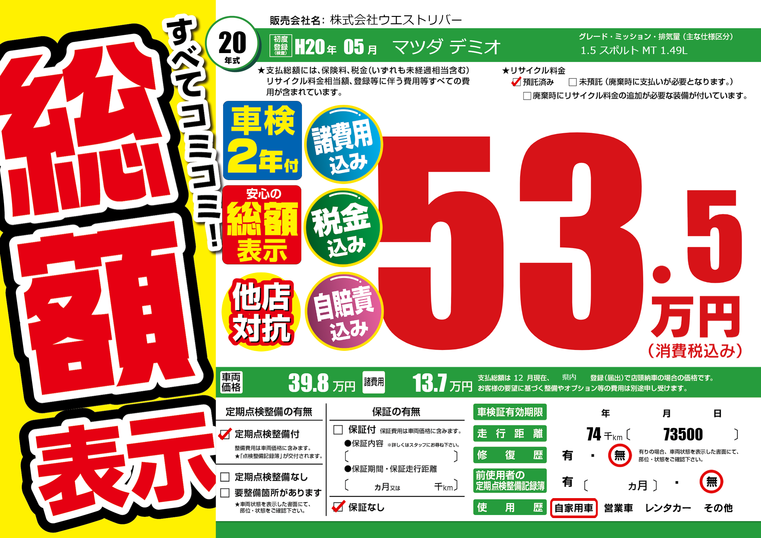 | 車名 | マツダ デミオ | グレード ミッション 排気量 |